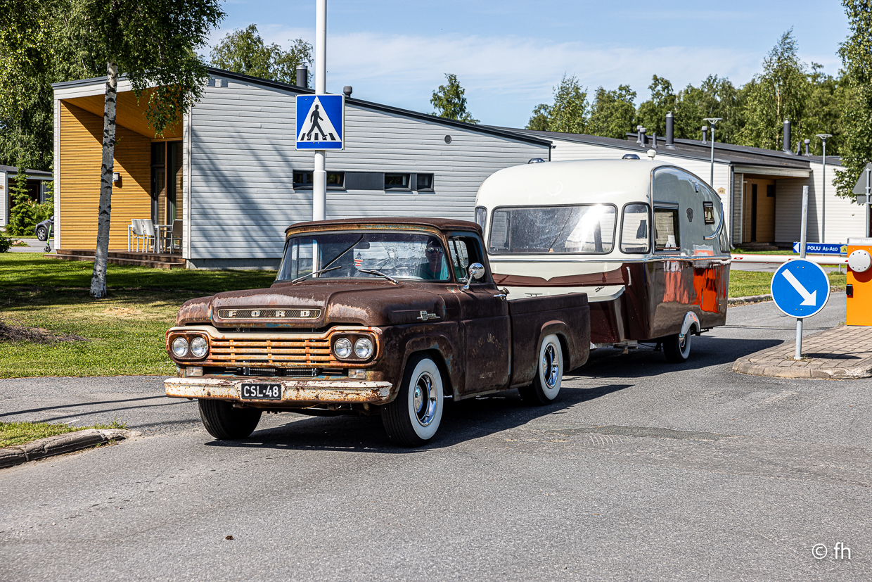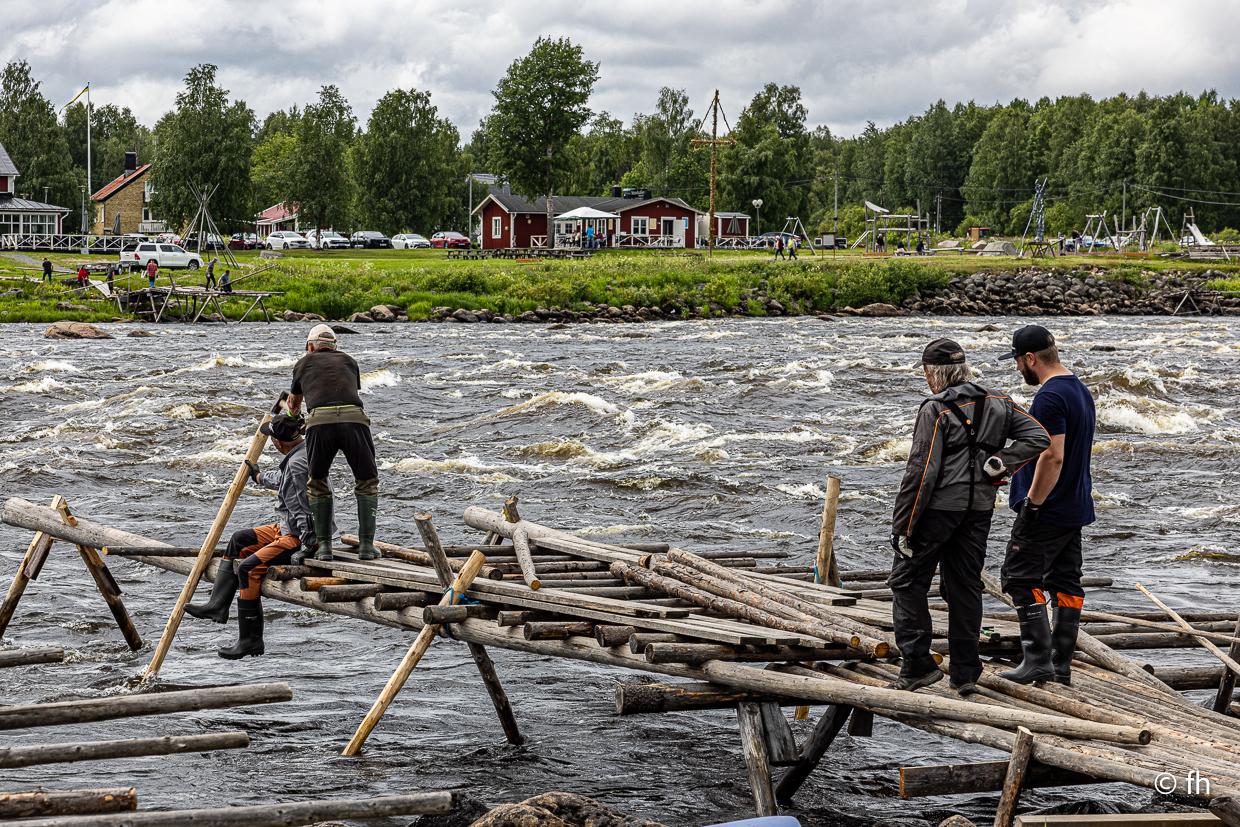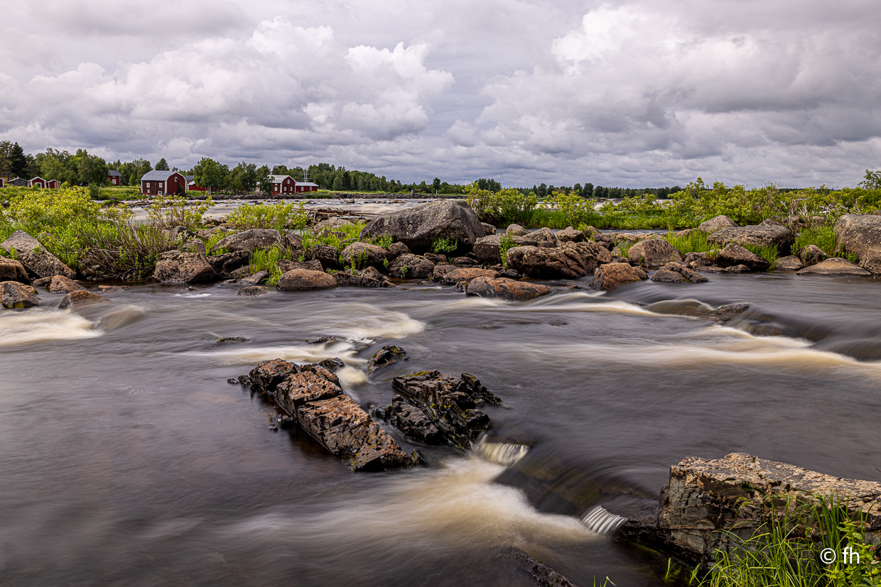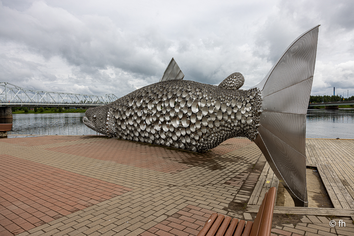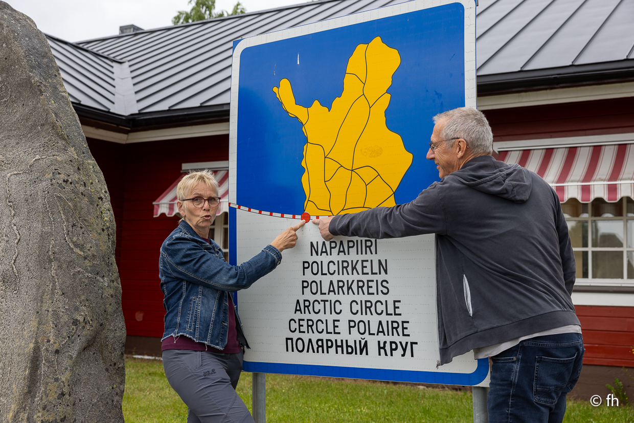 Auf der Fahrt nach Karpinpää haben wir zum wiederholten Mal den Polarkreis überquert. Damit kennen wir uns mittlerweile aus. Es regnet ein wenig, vielleicht vertreibt der Regen die Mücken. Mal sehen was es morgen so gibt. Heute waren es die Stromschnellen in der Nähe von Tornio. Es heißt, es gibt dort leckeren geräucherten Fisch. Na ja, wir haben ihn probiert. Unser Favorit wird es nicht.