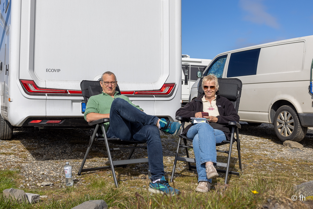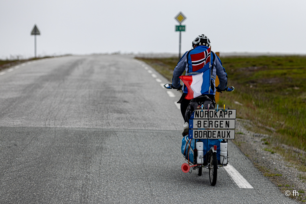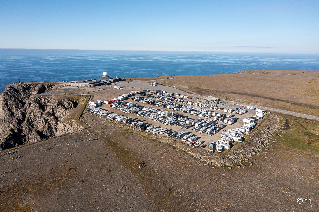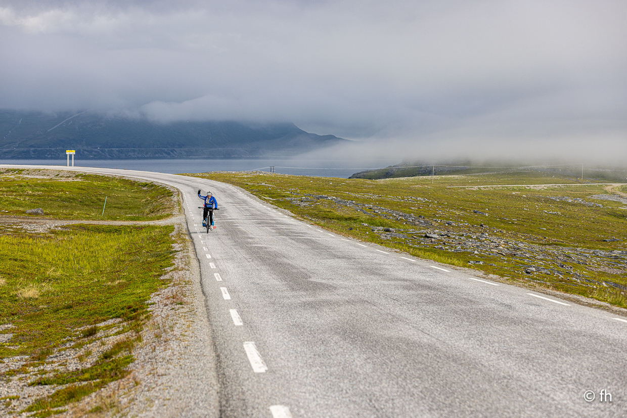 Die vergangene Nacht war ziemlich turbulent, der Wind hier oben auf dem Plato am Nordkap kann schon ordentlich am Wohnmobil wackeln. Nachdem wir gestern die Drohne am Nordkap verloren haben, hatten wir ein nettes Gespräch mit einem französischen Radfahrer. Nicht mehr der Jüngste übrigens. Er auf französisch wir auf deutsch, denn wir können kein Französisch und er kein Deutsch oder Englisch. Hat übrigens wunderbar funktioniert. Er ist am 15. Mai in Frankreich von Bordeaux aus losgeradelt und hatte bis gestern 4400 km in den Beinen. Zurück geht es mit dem Flieger. Von wo haben wir nicht erfahren.