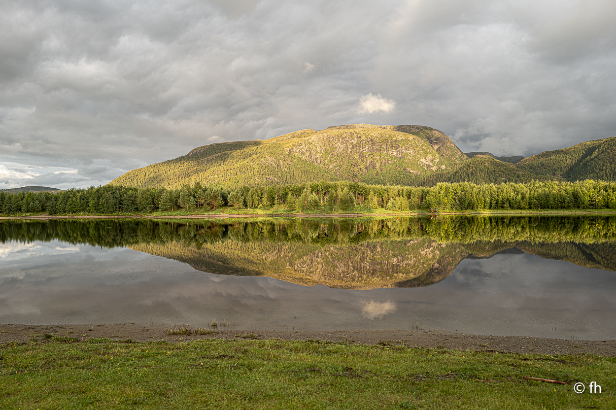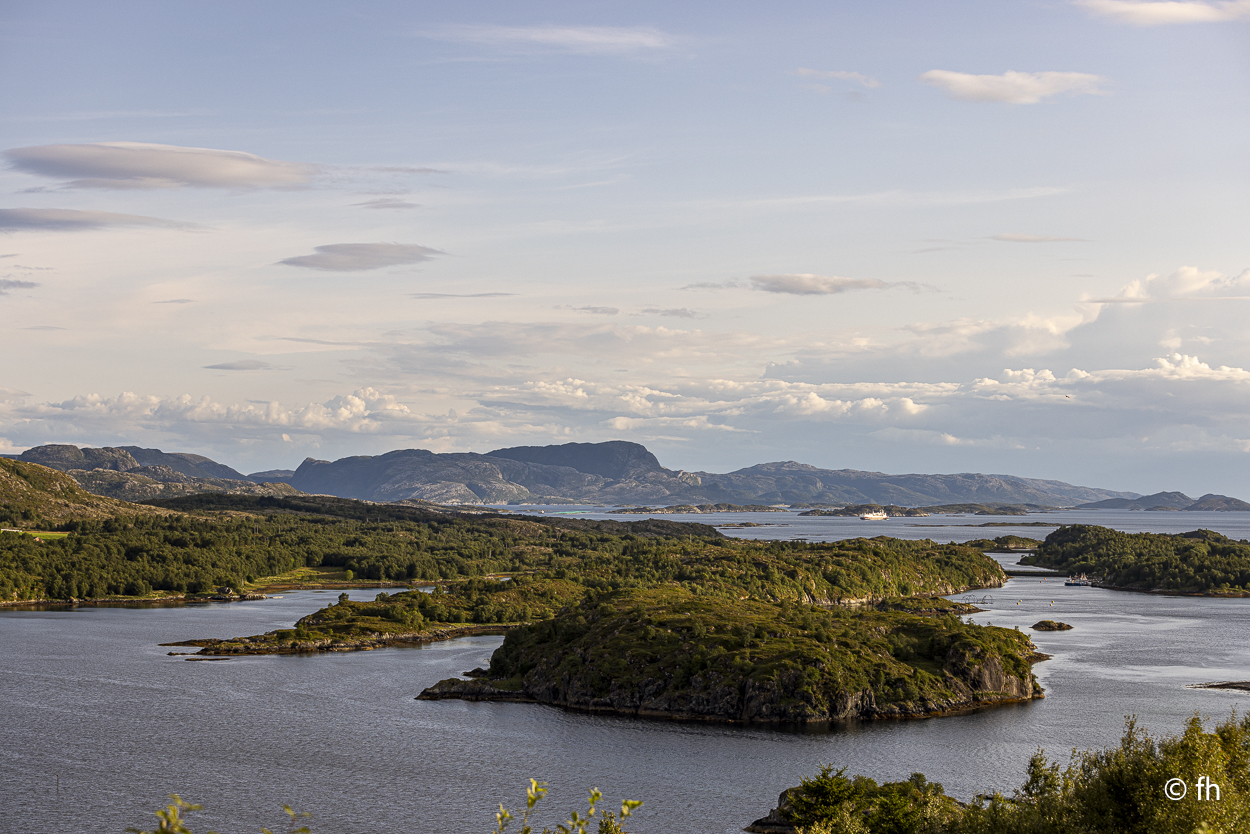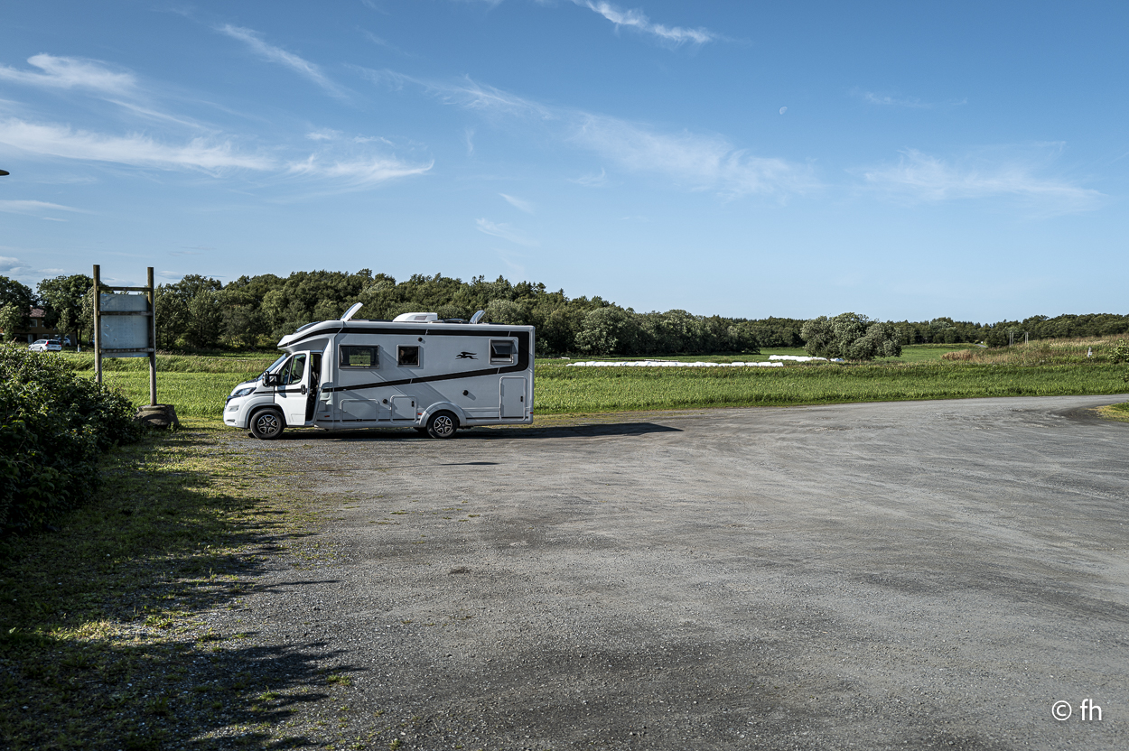 Bevor wir gestern die Insel Leka verlassen haben, machten wir nochmal eine Runde mit dem Wohnmobil über die Insel. Leider im Regen. Mit dem Auto waren die Steigungen von gestern, die wir mit dem Rad erklommen haben, nicht zu merken. Danach ging es mit der Fähre zurück aufs Festland. Die Fahrt verlief zum größten Teil im Regen. Hat den Vorteil, dass alle Mücken von der Front am Fahrzeug verschwunden sind. Bei erreichen des Ziels in Namsos zeigte sich dann doch die Sonne.