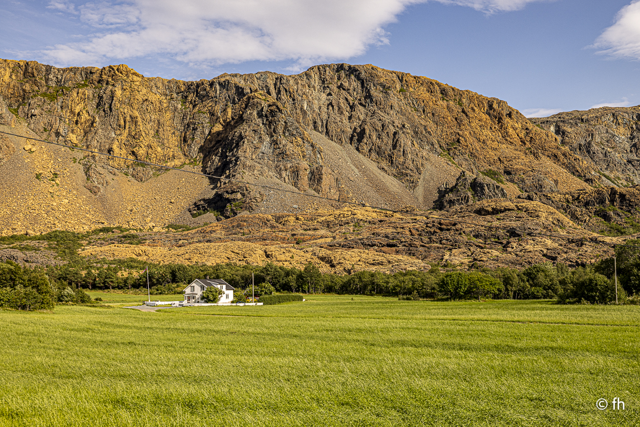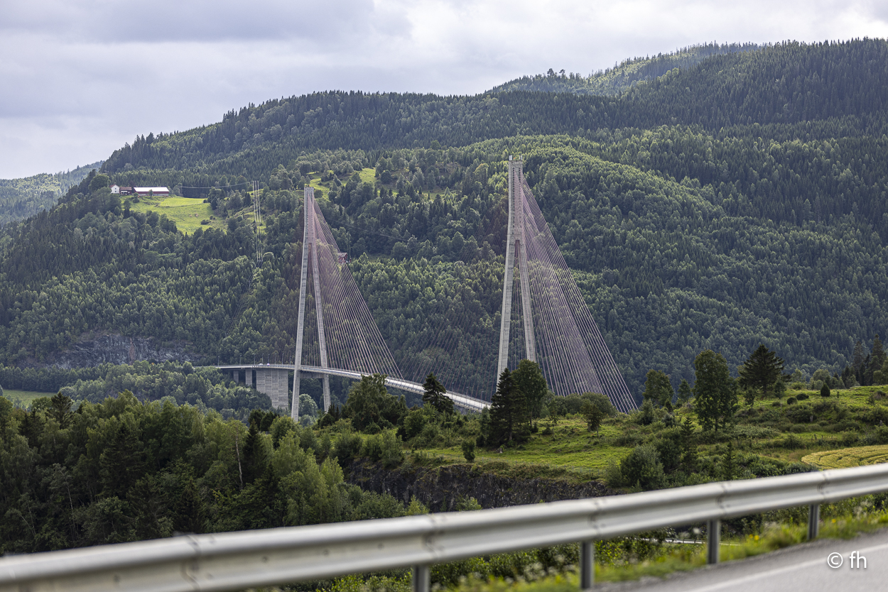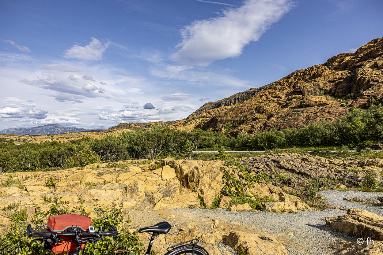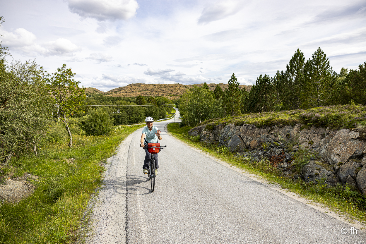 Bevor wir gestern die Insel Leka verlassen haben, machten wir nochmal eine Runde mit dem Wohnmobil über die Insel. Leider im Regen. Mit dem Auto waren die Steigungen von gestern, die wir mit dem Rad erklommen haben, nicht zu merken. Danach ging es mit der Fähre zurück aufs Festland. Die Fahrt verlief zum größten Teil im Regen. Hat den Vorteil, dass alle Mücken von der Front am Fahrzeug verschwunden sind. Bei erreichen des Ziels in Namsos zeigte sich dann doch die Sonne.