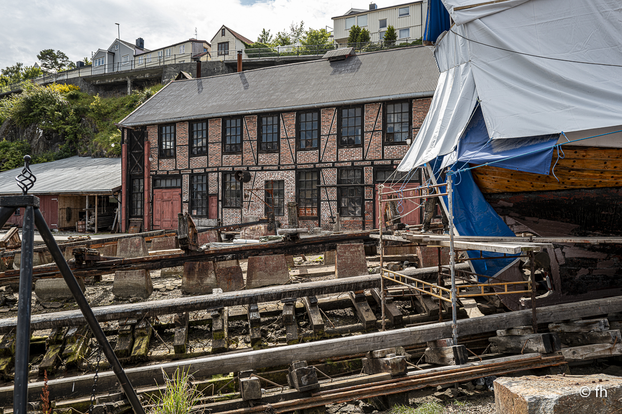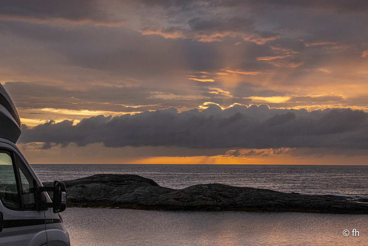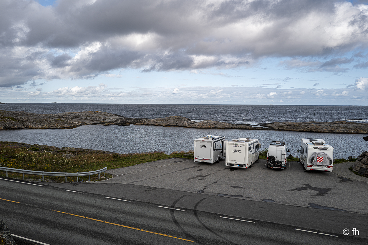5000 Kilometer und 11 Fähren liegen hinter uns. Das Auto hält noch, obwohl die Elektronik immer noch ihren Dienst in einigen Punkten verweigert. Wir hoffen, dass wir mit diesem Zustand unseres Autos die verbleibenden 2 Wochen unserer Reise schaffen. Wir sind auf der Atlantikstraße gelandet. Eine lange Fahrt lag vor uns, deshalb fiel das Trödeln heute Morgen aus. Ein Besuch in einer der ältesten Kaffeeröstereien und der historischen Werft in Kristiansund stand auf dem Plan der Reiseleitung. Die Kaffeerösterei mit einem Café ist mehr als 100 Jahre alt. Der Eigentümer ist vor zwei Jahren gestorben. Das Café wird heute von der Stadt weitergeführt. Die Kaffeerösterei ist vermutlich die älteste, die in Norwegen noch in Betrieb ist. Die historische Schiffswerft Mellemverftet ist die einzige aktive Museumswerft des Landes und ist nur einen Steinwurf von der Rösterei entfernt. Eine nette Dame hat uns einiges über diesen Ort erzählt, netterweise in deutsch. Die Deutschen hatten damals großes Interesse an der Werft. In der Werft wurde alles selbst hergestellt, vom Nagel bis zur letzten Verzierung für die Schiffe. Die Stadt ist aus unserer Sicht nicht besonders sehenswert. Es gibt nur wenige historische Gebäude, viele wurden wohl damals zerstört. Die Nacht verbringen wir direkt an der Atlantikstraße, unweit der Storseisund-Brücke. Diese Brücke hat sicher jeder schon mal auf Fotos gesehen hat. Es regnet und der Wind von der See zuppelt ordentlich am Wohnmobil. Die Batterien und der Kühlschrank sind voll und wir haben einen ungestörten Blick auf das Wasser. Im Fernseher läuft Olympia. Was will man mehr, besser geht es kaum.