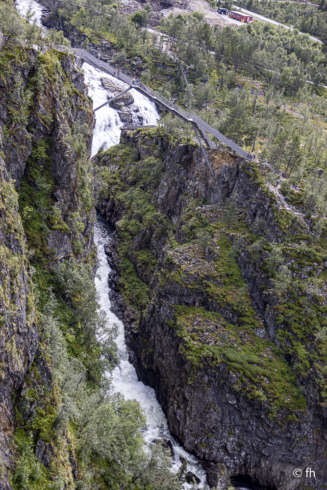 Vøringsfossen, Fossen heißt: Wasserfall. Also Vøringswasserfall. Der Wasserfall ist nicht der höchste Wasserfall Norwegens, aber sicherlich der spektakulärste. Gut 183 Meter ist der Vøringsfossen hoch, die größte Fallstrecke beträgt 145 Meter.