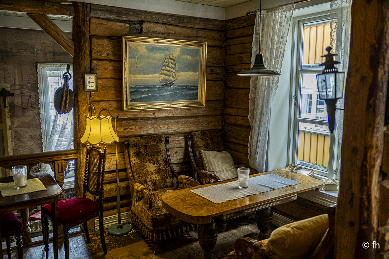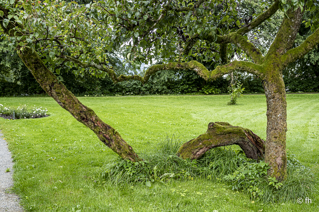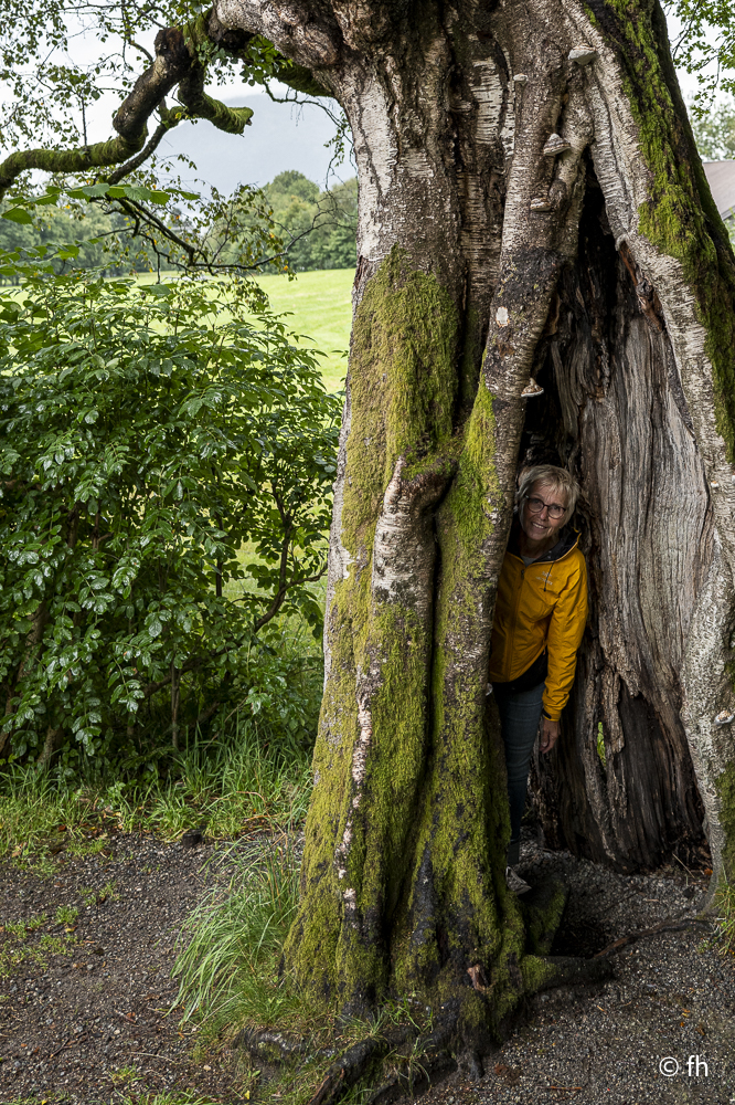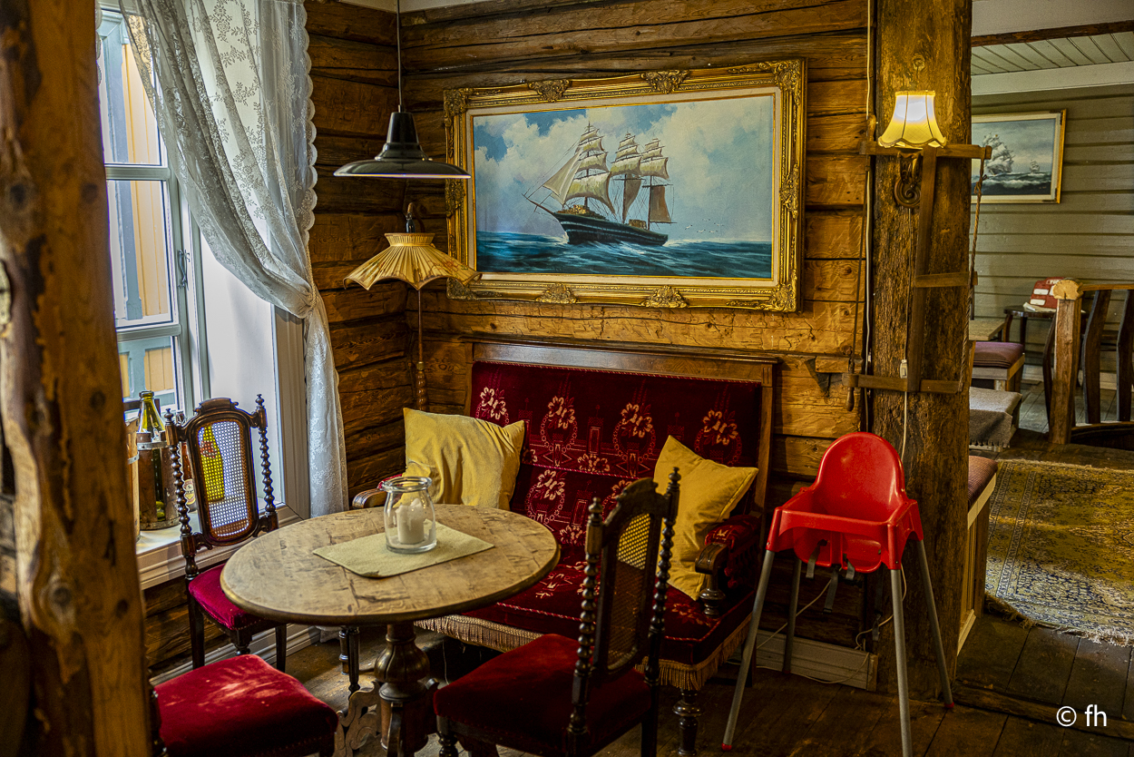 Die Nacht in dem Obstgarten-Campingplatz war komplett verregnet. Aber das Wohnmobil ist trotz des riesigen Lochs im Heck dicht. Morgens zeigte sich dann die Sonne und der Nachbar, der uns abends zuvor die Sicht auf die schöne Landschaft geraubt hatte, war auch schon früh wieder auf Achse. Dem Frühstück mit Ausblick stand also nichts mehr im Weg. Der heutige Programmpunkt führte uns zu dem kleinsten Schloss in Skandinavien. Christel hat die Schlossführung mitgemacht, sie war die einzige Teilnehmerin. Ich habe in der Zwischenzeit in dem netten kleinen Café mit leckerem Kaffee und Kuchen die Zeit verbracht.