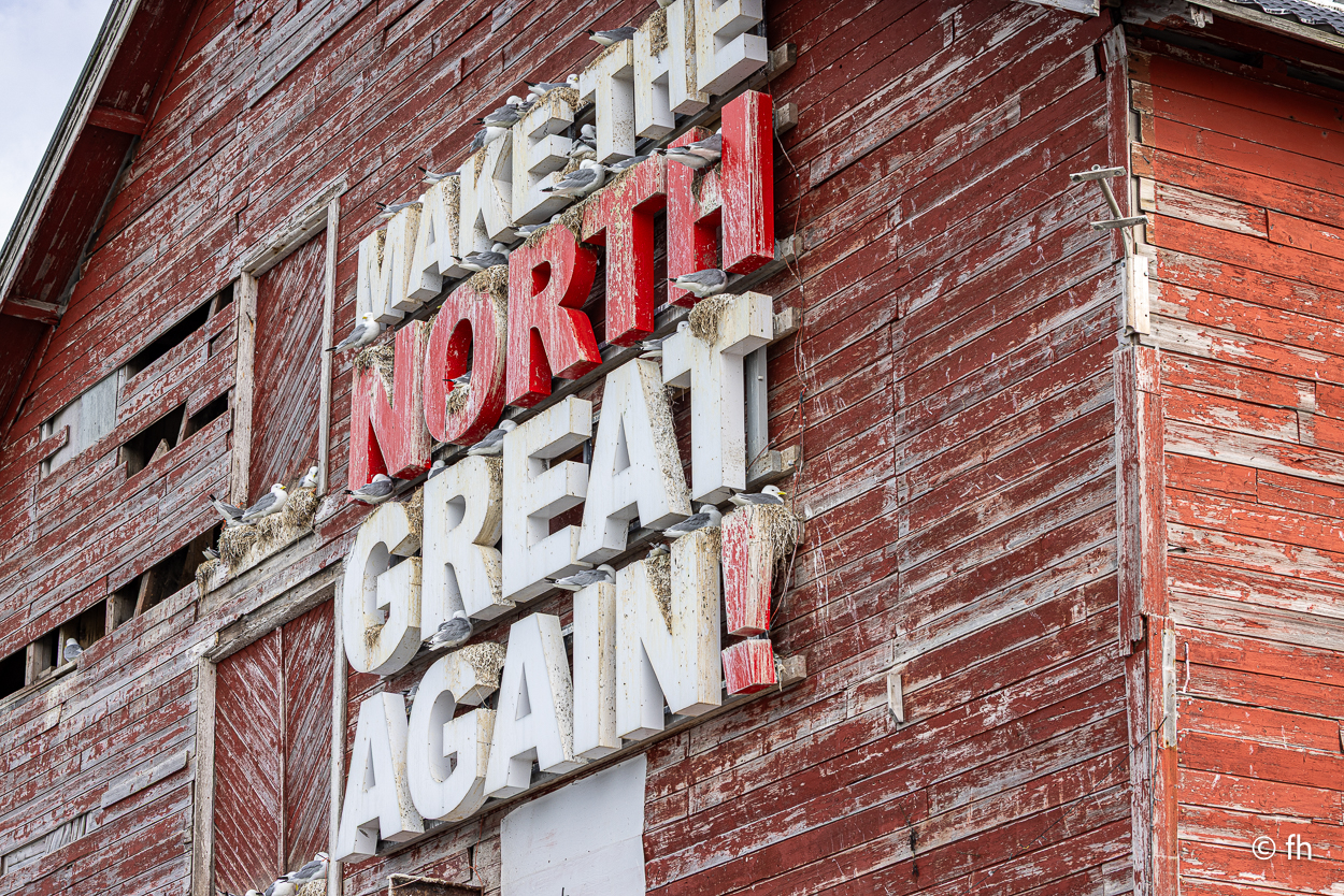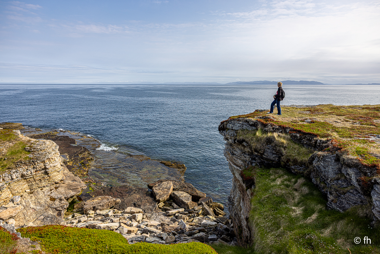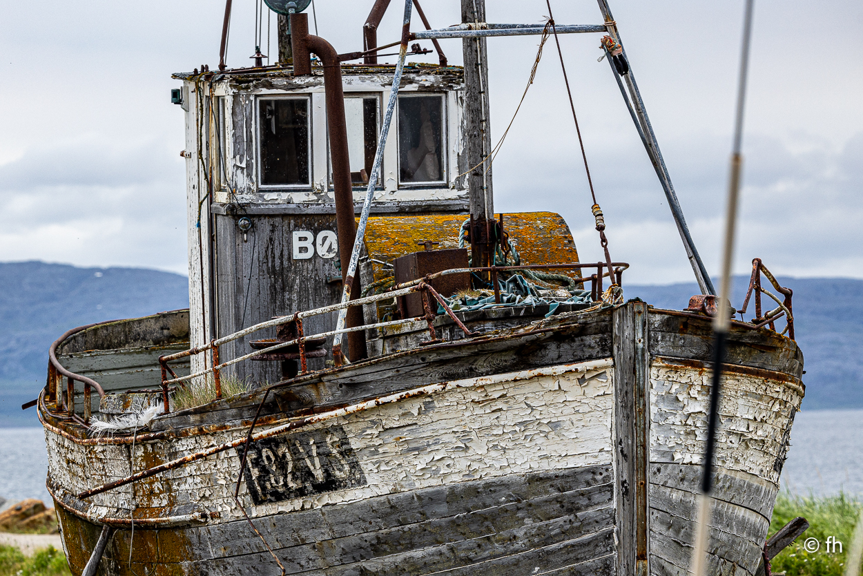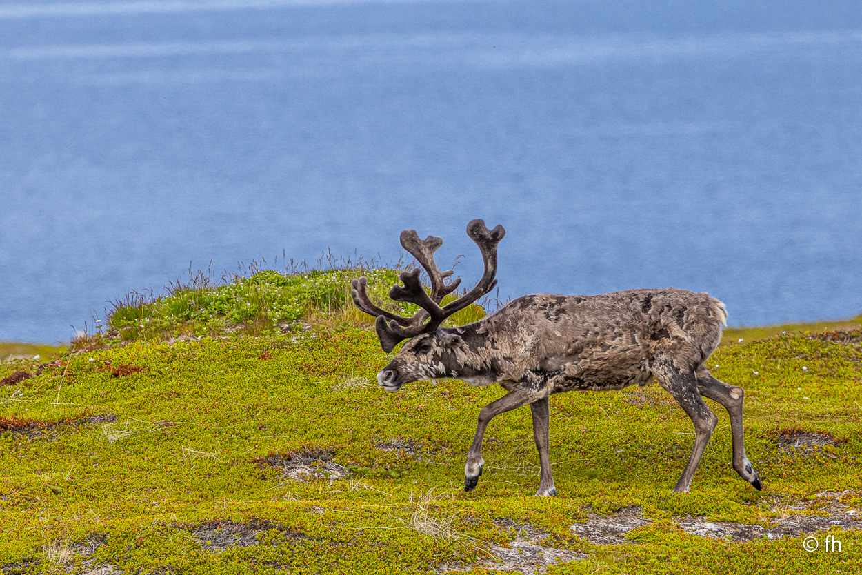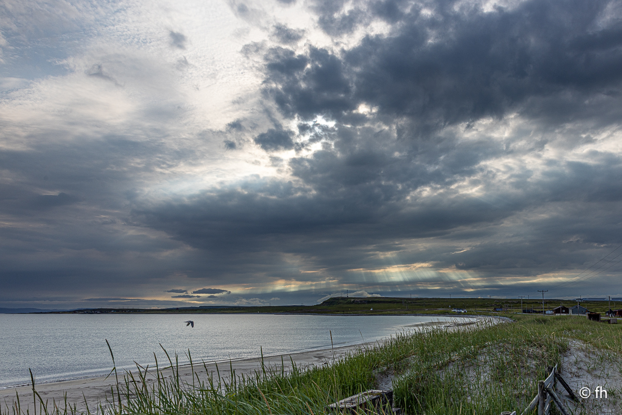 Nachdem wir die Nacht in einem nicht perfekt ausgerichteten Wohnmobil verbracht haben, ich bin immer zum Fußende des Bettes gerutscht, ging die Fahrt wie geplant nach Hamningberg. Der Weg führte uns über den nördlichsten Punkt in Finnland, der auch gleichzeitig die Grenze zu Norwegen markiert. Nach 50 Kilometer war die Grenze in Nuorgam zu Norwegen erreicht. Je weiter wir Richtung Norden fahren, werden die Bäume kleiner und die Landschaft wird übersichtlicher. Wir erreichen die Küste vom Eismeer (Varangerfjord). Die Fahrt nach Hamningberg verläuft entlang der Landschaftsroute Varanger. Die Sonne scheint. Es ist wunderschön hier, wenn man das Karge und die Einsamkeit mag. Landschaft so weit das Auge reicht. Die erste Waffel mit Käse gab es in einem Museum in der Gemeinde Nesseby. Der nächste Stopp war eine Halbinsel in Ekkørøy. Auf der Halbinsel kann man seltene Vögel beobachten, so steht es geschrieben. Wir haben wohl den falschen Zeitpunkt erwischt, die Vögel haben die Insel bereits verlassen. Nur Möwen und einige Rotschenkel haben wir gesehen. Ein Wanderer sagte uns, dass er vor zwei Jahren schon mal hier war, da war die Hölle los. Schade. Aber der 6,5 Kilometer lange Weg hat sich trotzdem gelohnt. Wir waren fast alleine unterwegs. Im Wasser kam dann noch ein Weißschnauzendelfin zum Vorschein. Wir denken das es ein Weißschnauzendelfin war. Die heutige Nacht verbringen wir direkt am Wasser ohne Campingplatz.