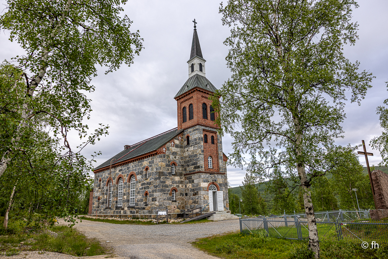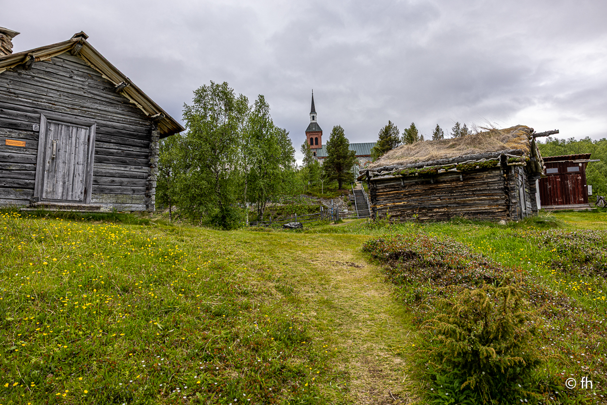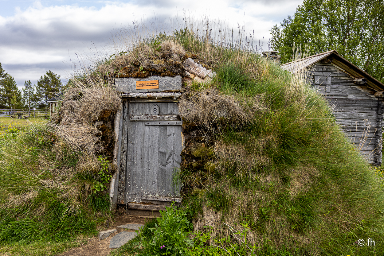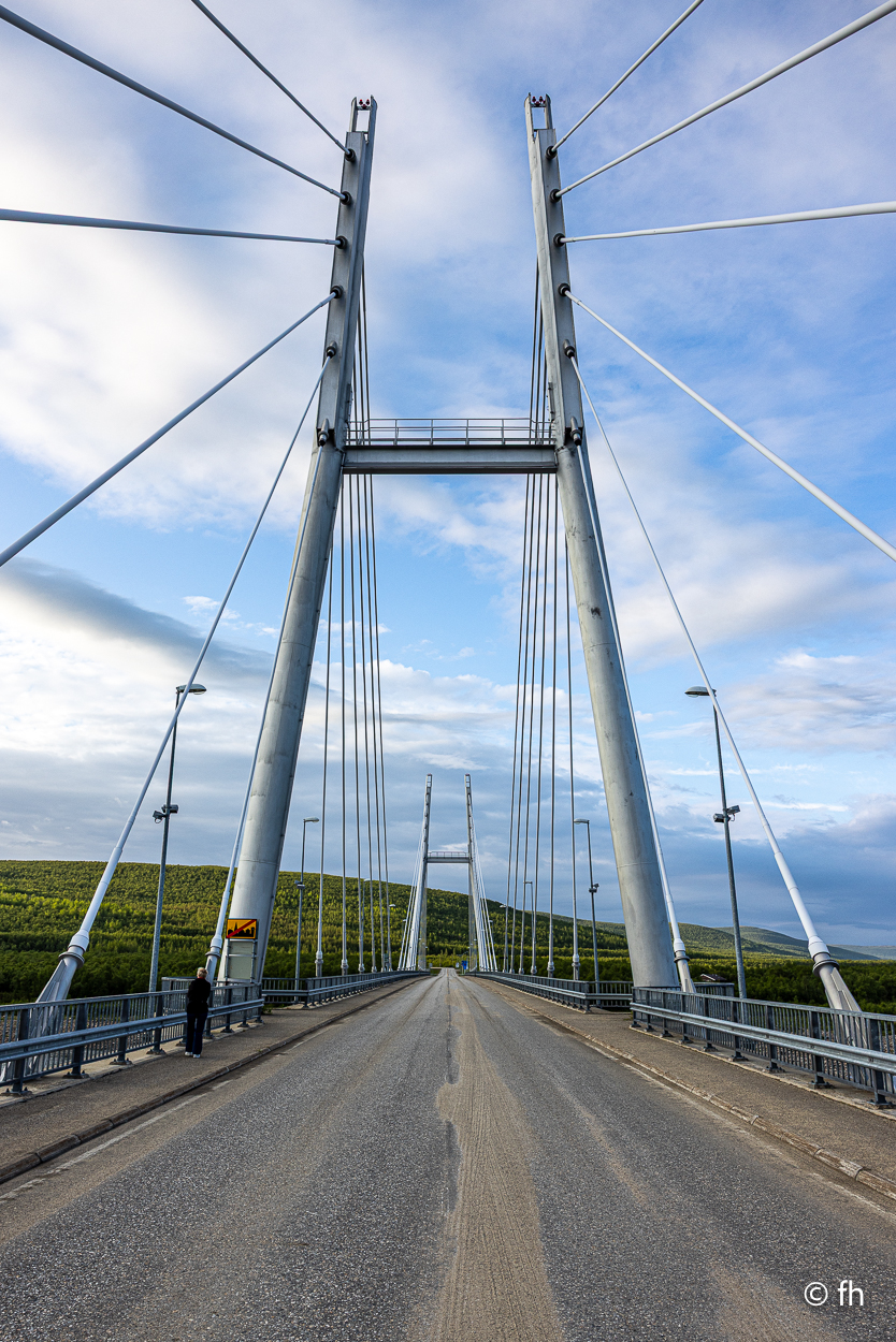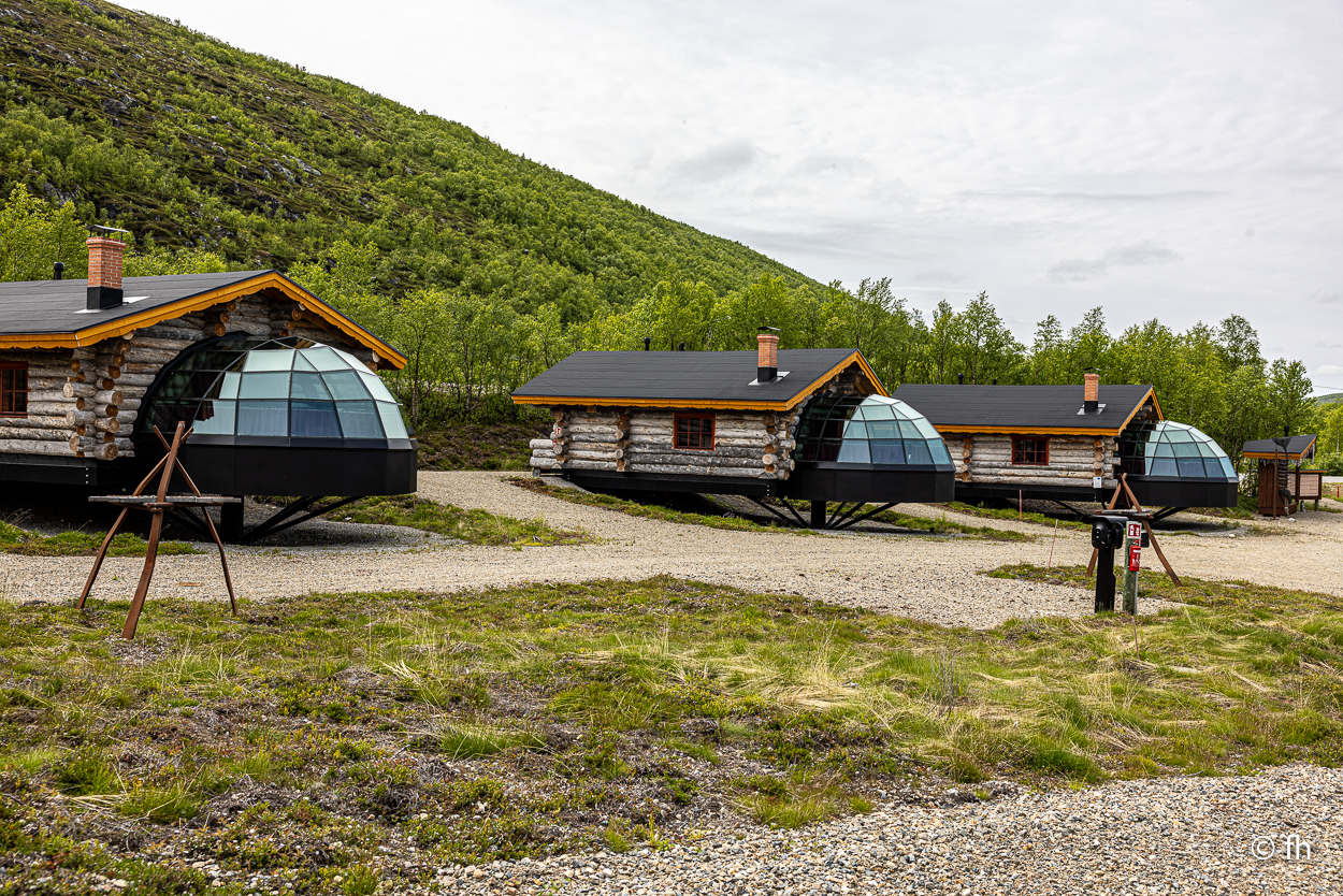 Da sind wir heute Abend, nach dem Abendessen, mal kurz über die Grenze von Finnland nach Norwegen gegangen. Hier in Utsjoki ist die Grenze von Finnland nach Norwegen. Aber morgen geht es weiter Richtung Norden, zum nördlichsten Punkt in Finnland. Am südlichsten Punkt in Finnland waren wir ja schon. Das Ziel ist dann Nuorgam, das soll dann der nördlichste Punkt sein. Dann geht es über die Grenze nach Norwegen und weiter bis nach Hamningberg. Wann wir da ankommen? Mal sehen. Wenn das so weiter geht wie heute, von einem Café zum nächsten, dann kann das dauern. Der heutige Tag war eine Kaffeetour. Erst ging es in ein nettes Café, das uns mit übergroßen Moltebeeren gelockt hat. Wir wollten eigentlich nur Moltebeeren kaufen. Keine da, die Saison beginnt erst in zwei Wochen. Na gut, dann eben einen Kaffee. Den zweiten Stopp haben wir als Pause nach einer langen Etappe eingebaut. Es gab leckere Waffeln und einen super Kaffee. Leider hatte die kleine Bude die Türen sperrangelweit offen und das bei 10 Grad Außentemperatur. Es geht gemütlicher. Den letzten Kaffeestopp gab es dann kurz vor unserem Nachquartier. Wir wussten da noch nicht, dass wir nur 3 Kilometer später einen Campingplatz anfahren würden, bei den Kirchhütten in Utsjoki.
