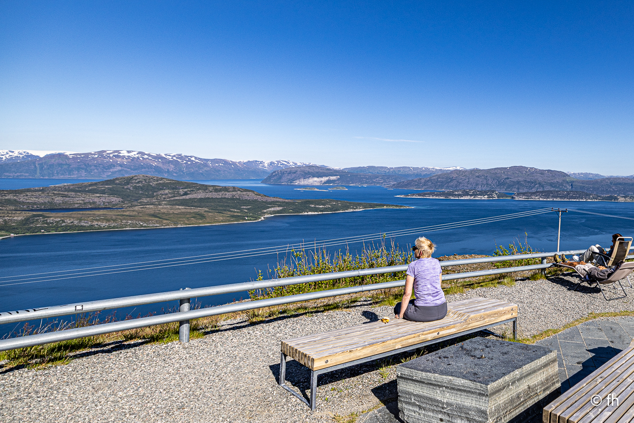 Die Zeit fliegt vorbei. Woche 4 beginnt. Mittlerweile haben wir 3800 Kilometer auf dem Tacho. Übrigens, Christel hatte vorsorglich telefonisch einen Tisch in dem Fischrestaurant in Skarsvåg gebucht. Einen Tisch. Es gibt dort nur zwei Tische. Allerdings für jeweils 8 Personen. Unser Tisch war bereits mit 6 Personen gefüllt. Wir saßen uns gegenüber und hatten keinen Einfluss auf unseren Tischnachbarn. Links Italienerinnen und rechts ein Schweizer. Wir hatten einen lustigen Abend. Das Restaurant bestand aus nur einem Raum inkl. Küche, in der die Chefin und der Chef die Gerichte zubereiten. Super lecker. Am Sonntag haben wir die Nacht in Alta verbracht. Dort waren wir 2024 auch schon.