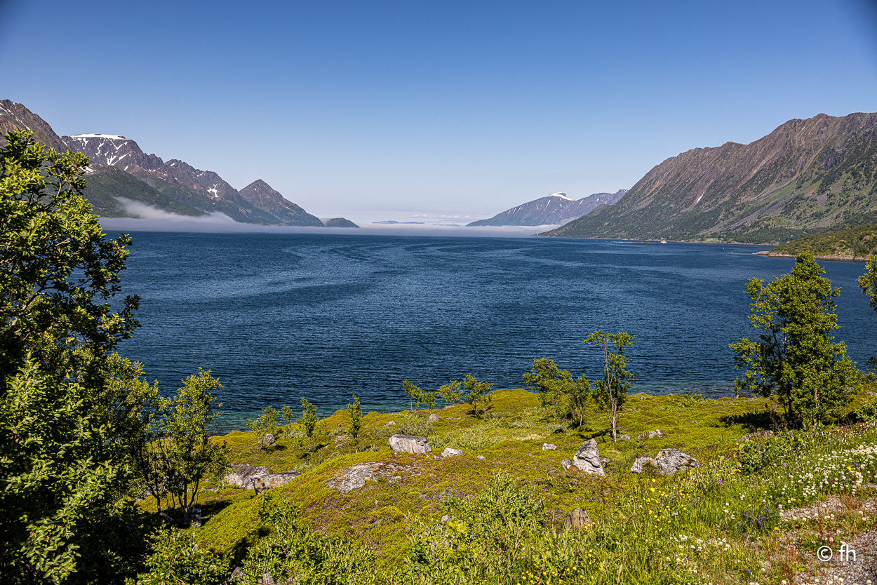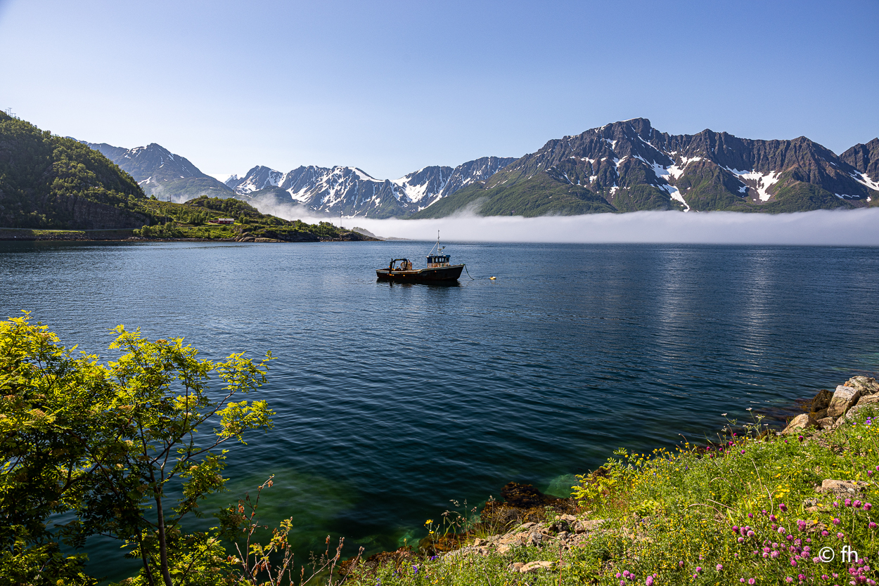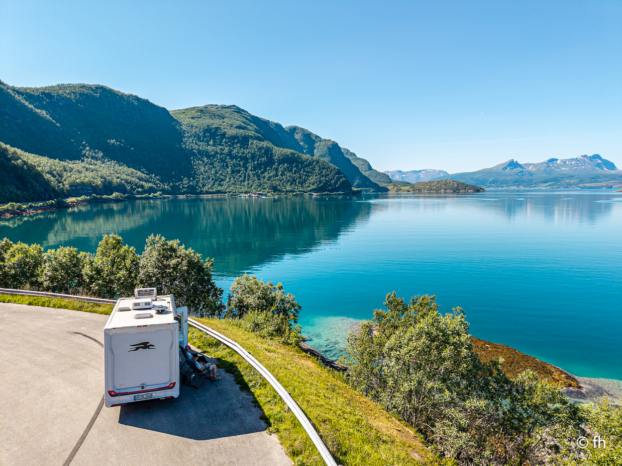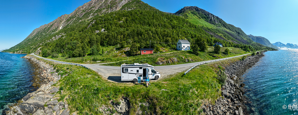 Gestern ist unsere Fahrt von Grov nach Kjerringnes ohne besondere Vorkommnisse abgelaufen. Übernachtet haben wir auf einem super Platz. Eine kleine Landzunge, die nur 50 Meter breit ist. Wir mussten heute leider umziehen, nur 10 Kilometer weiter nach Sortland. Nun stehen wir auf einem Platz, der zwar nicht besonders gepflegt ist, aber es ist alles vorhanden. Leider schon sehr veraltet und es ist bis jetzt der teuerste. Als Camper ist man es gewohnt mit wenig auszukommen. Es muss leider sein, da wir hier heute Abend von einem Guide abgeholt werden. Es gab beim Buchen der Tour keine andere Abholmöglichkeit. Die Aussicht von unserem Wohnmobil entschädigt für die schlechten Sanitäranlagen. Außerdem haben wir alles Wichtige selbst im Haus. Na ja, die Nacht wird sowie so etwas kürzer, denn der Guide kommt erst um 23 Uhr und das ganze dauert 3-5 Stunden. Wir werden berichten.