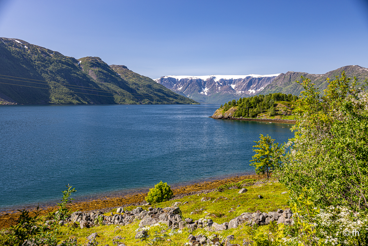 Heute haben wir auf dem Weg zur Insel Lynen die erste Fährfahrt genommen. Es werden noch einige folgen. Mir war danach etwas schwummerig. Aber der Marsch zum Leuchtturm auf der Insel hat den Schwindel vertrieben. Es ging bei herrlichem Sonnenschein, teilweise über Geröll und dicke Felsen, steil bergauf. Im Internet hat sich das ganz anders gelesen. Leichte Tour, auch mit Kindern möglich. Unser Weg war nichts für kleine Kinder. Wer weiß, wer das geschrieben hat. Oder wir haben den falschen Weg gewählt. Egal, die Quälerei hat sich gelohnt. Wir wurden mit einem traumhaften Ausblick und einer himmlischen Ruhe belohnt. Danach ging es, wie es schon fast zur Gewohnheit geworden ist, zum Kaffeetrinken. Nach der Frage an den Gastwirt wo man denn hier auf der Insel kostenlos übernachten kann, hat er uns einen Platz hinter seinem Restaurant angeboten. Keine 2 Meter vom Wasser entfernt mit einem super Blick. Glück muss man haben. Dann bleibt heute die Küche im Wohnmobil mal wieder kalt. Das Essen war vom Feinsten und nur ein kurzer Weg ins Bett. So kann es weiter gehen.