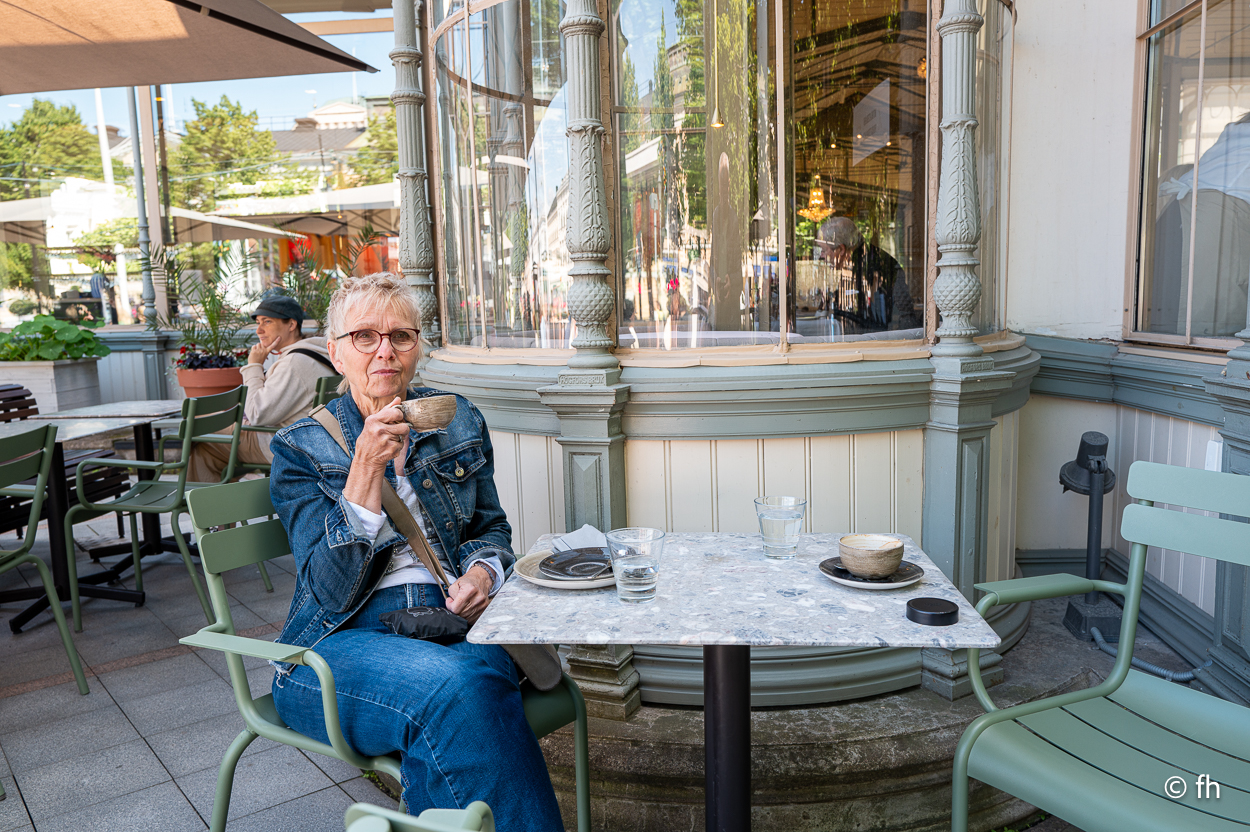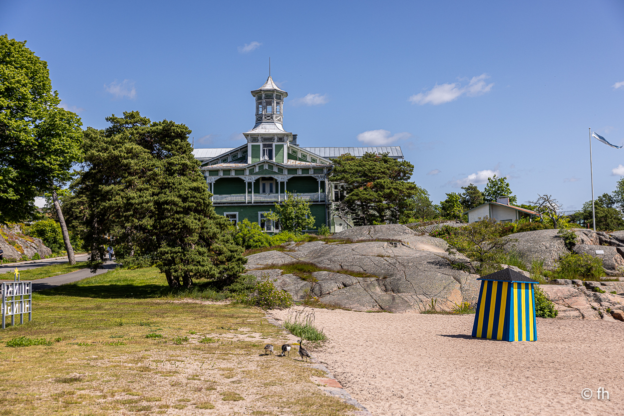 Nach der ersten Nacht in unserem neuen Heim für die nächsten 8.Wochen, ging es erst einmal zur morgendlichen Dusche. Ab in die Duschkabine, fertig und die Dusche angestellt. Wo ist das Shampoo???… nicht da… im Wohnmobil!!!!!… scheebbig, ohne Seife wird das wohl nur eine Katzenwäsche. Duschtür auf, keiner da, wacker zum Seifenspender am Waschbecken. Geht doch. Dann konnte das erste Frühstück bei strahlendem Sonnschein ja beginnen. Heute sind wir mit der Metro nach Helsinki gefahren. Christel hat die Planung voll im Griff, ich brauch mich nur anzuhängen. Bei einer ausgedehnten Bootstour haben wir einige wunderschöne Orte und Inseln gesehen. Da lässt es sich leben. Und zu jedem Haus in Ufernähe gehört eine Sauna, die direkt am Wasser steht. In Finnland gilt übrigens das Jedermannsrecht. Die Natur gehört hier jedem, solange niemand in seinen Persönlichkeitsrechten gestört wird. Pilze im Wald zu sammeln gehört übrigens dazu, und wenn sie auf privatem Grund stehen, darf sie auch dort jeder ernten. Nach der Bootstour haben wir uns in der Markthalle eine Fischsuppe gegönnt. Ein Genuss. Dann noch schnell eine Suppenkelle besorgt, die andere liegt in Dortmund, bevor es mit der Metro zurück ging.