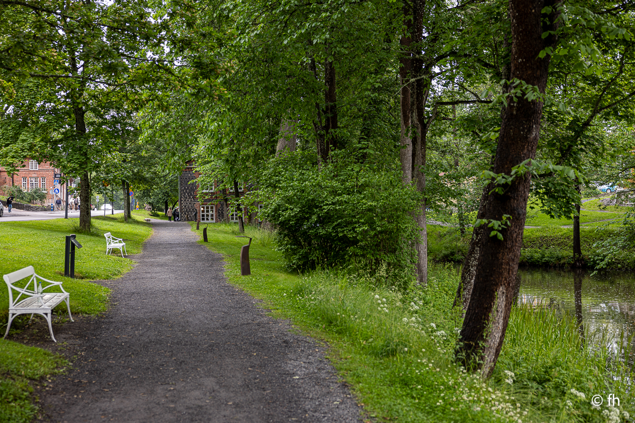Schebbig Wetter heute Morgen, kein Frühstück draußen im Sonnenschein. Es hat die ganze Nacht geregnet. Unsere Fahrt sollte uns, mit einem Zwischenstopp in Fiskars, nach „Hanko“, dem südlichsten Ort Finnlands führen. In Fiskars gibt es einen Shop der Männerherzen höherschlagen lässt, hat Christel gelesen. Also nichts wie hin. Ein kleines nettes Dorf mit vielen Cafés und kleinen Geschäften mit viel Kunst und Textilen, sowie eine Schokoladen Manufaktur, in der man sich durchprobieren konnte.