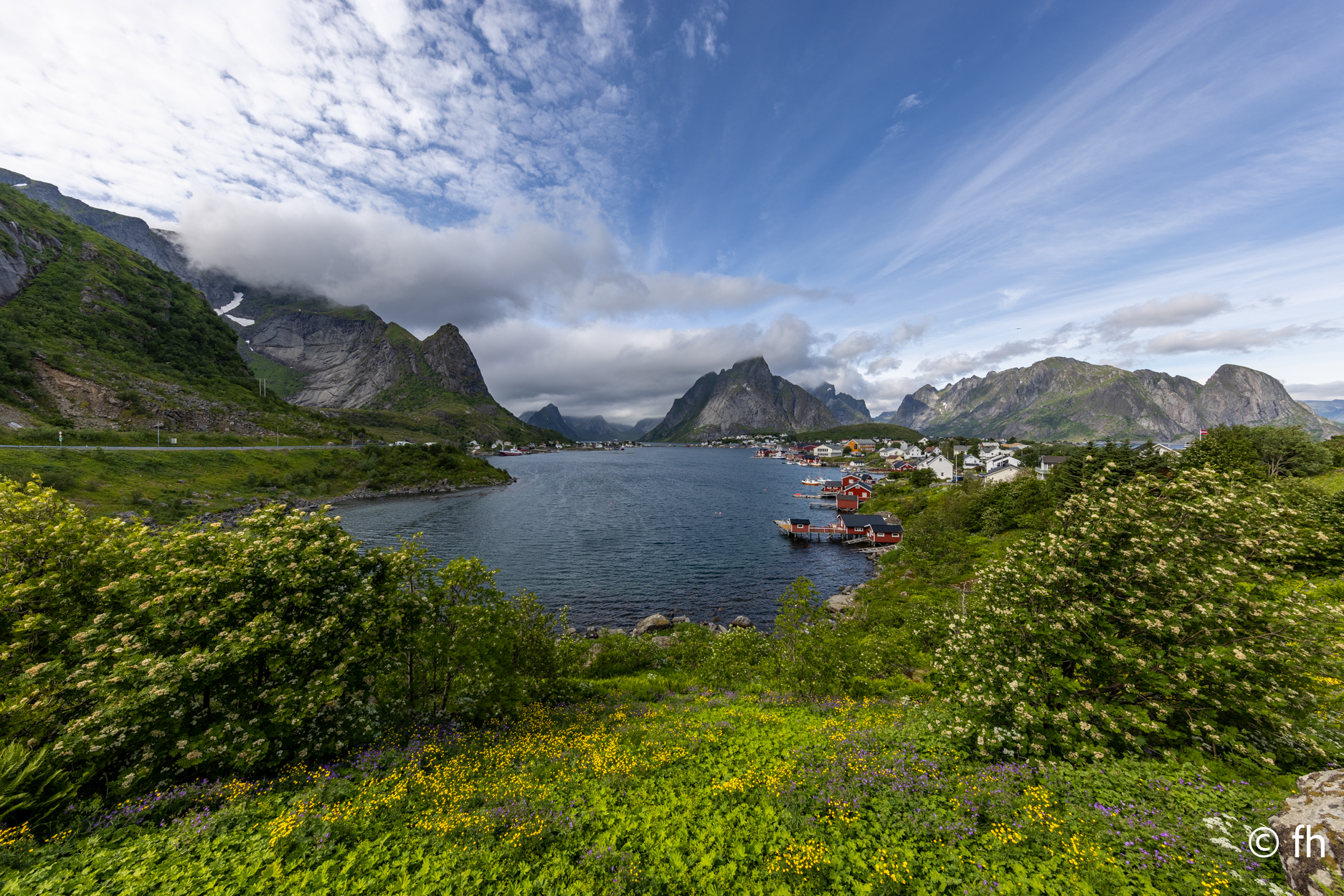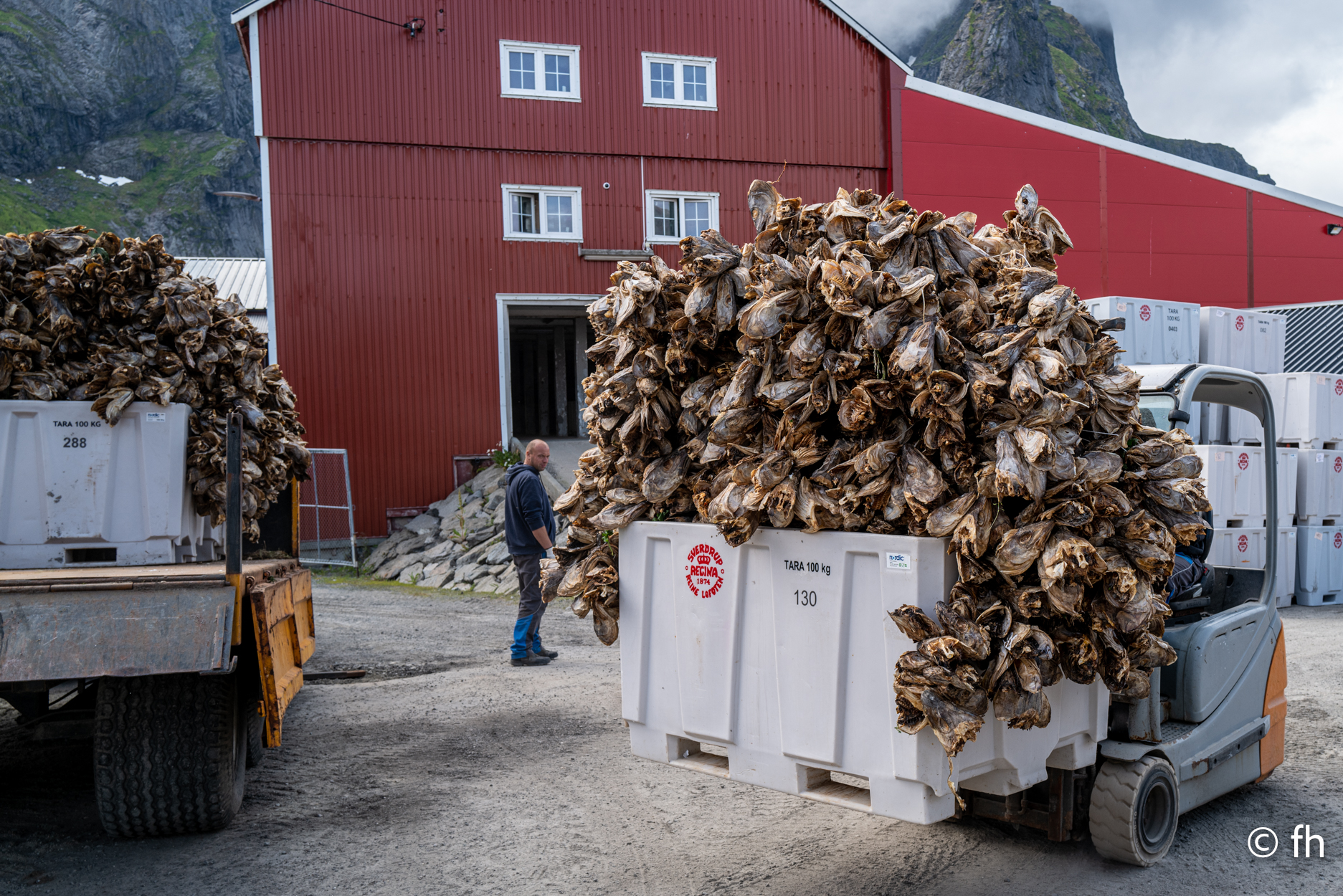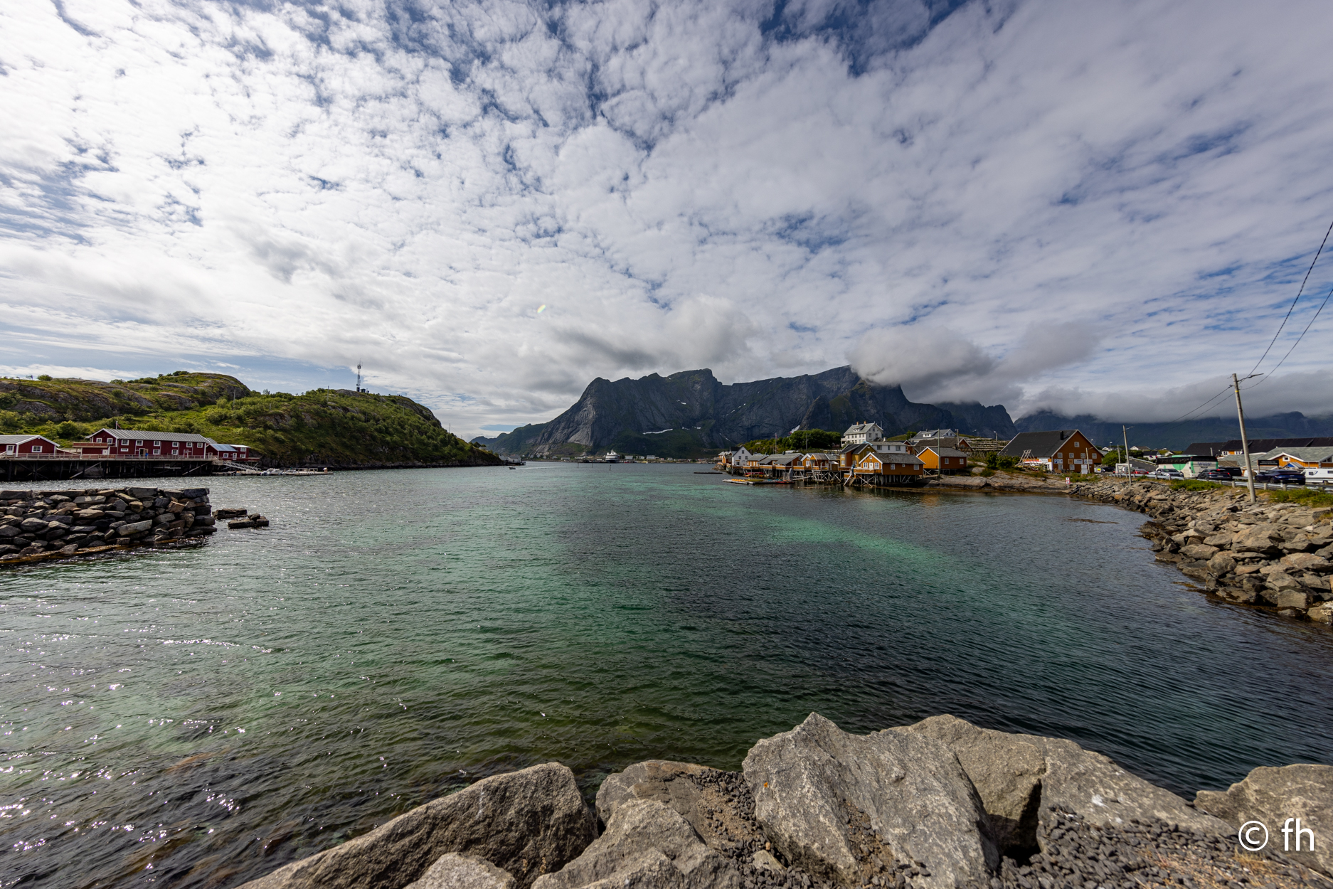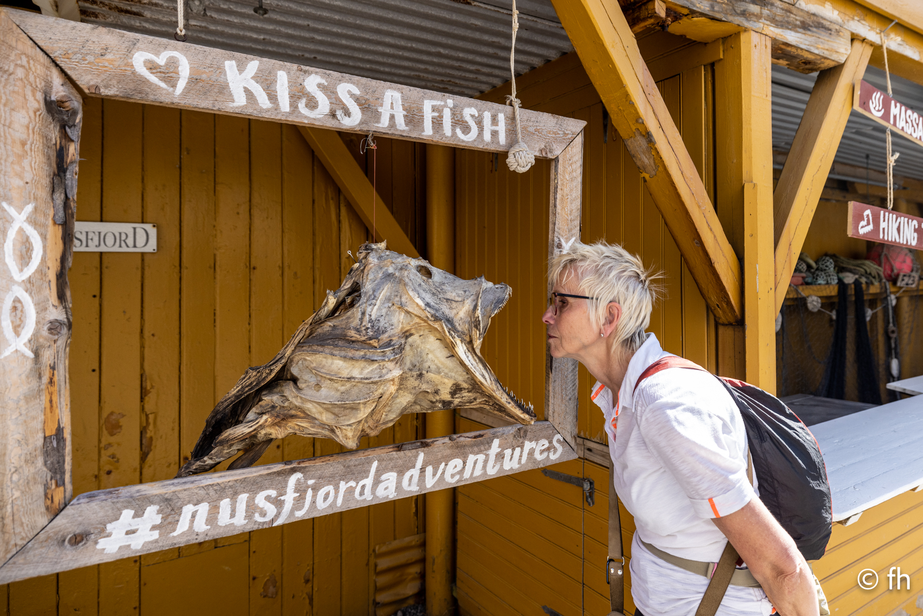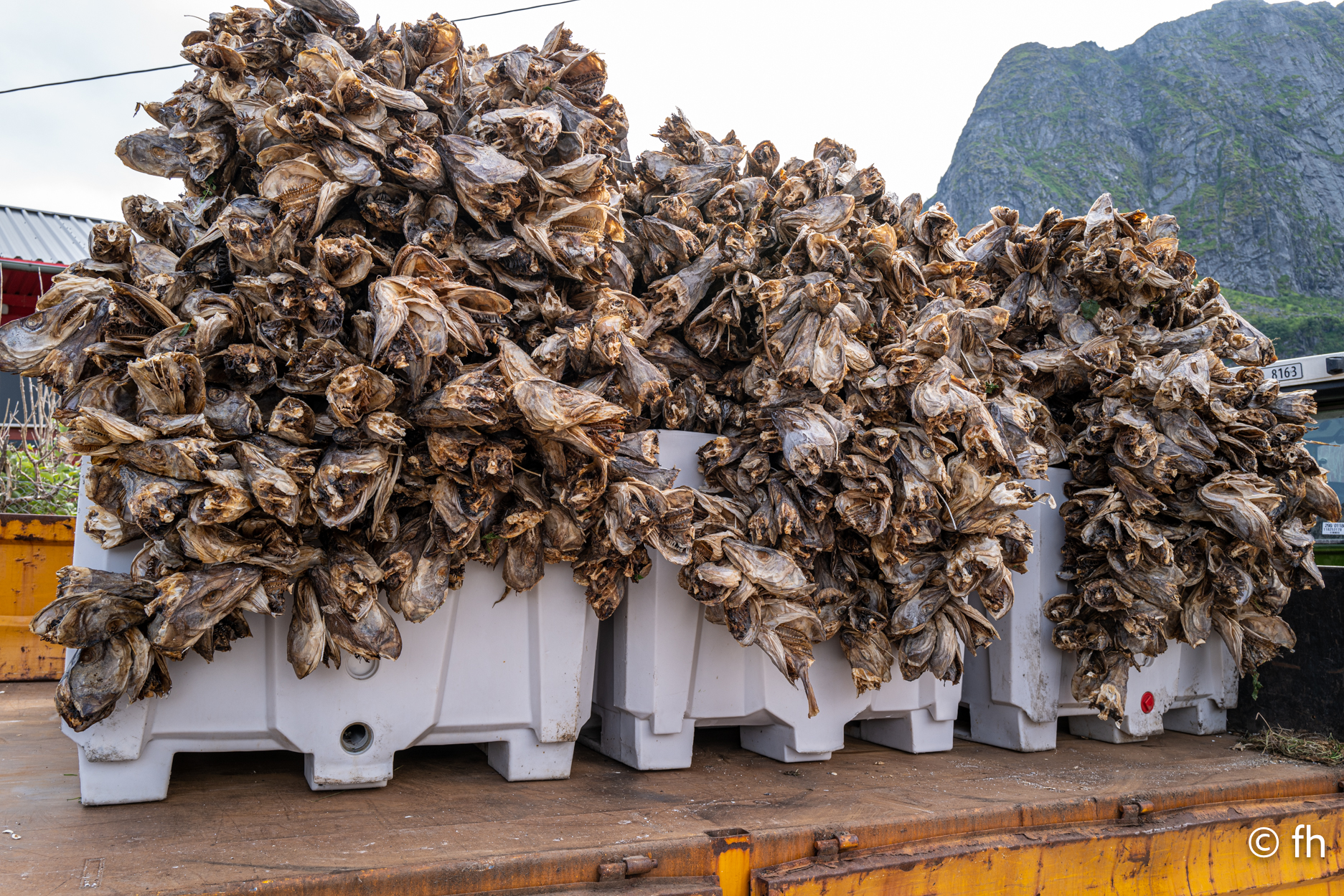 Die Nacht in Fredvang direkt am Strand war nass, aber das stört uns nicht. Wir sind gut ausgestattet, Dach über dem Kopf, Heizung und ein riesiges Bett. Am Morgen war der Himmel komplett bedeckt. Ein kleiner Zwischeraum zwischen dem Wasser und den Wolken blieb dennoch. Nach ein paar Kilometern lichtete sich das Ganze ein wenig und die Sonne zeigte sich. Die Strecken die wir fahren werden immer kürzer, es gibt hier überall nette Orte die sich lohnen anzuschauen. Sowie der Ort Sakrisøy. Der Einkaufsladen Anita’s Seafood hatte uns gelockt. Es gibt dort alles was hier im Wasser schwimmt. Unter anderem leckere Fischburger. Der schwimmt näturlich nicht im Wasser, nur der Belag. Wir haben uns einen mit Lachs bestellt. Lecker. Noch ein bisschen für das nächste Abendessen eingekauft und dann ging es weiter Richtung Reine. Hier werden wir heute auf einem riesigem Platz direkt am Wasser übernachten. Das kleine Dorf ist fußläufig zu erreichen. Der Ofen im Wohnmobil blieb heute aus. Wir haben ein nettes Restaurant im Dorf gefunden. Sehr gemütlich eingerichtet. Es gab Rentier und anschließend ein Eis „Brown Chees“, beides zum reinlegen lecker. Wir haben noch nie so ein gutes Eis gegessen. Puuh das war echt der Brüller. Überlege ob wir dort morgen nochmal einkehren und eine doppelte Portion von dem Eis ordern. Aber erst einmal steht die Wanderung zum „Reinebringen“ an, 1566 Stufen sollen es sein. Wir werden berichten. Heute haben wir auf den Holzgestellen auf denen der Stockfisch getrocknet wird nur Fischköpfe gesehen. Es stinkt mächtig. Hier in Reine gibt es eine Fabrik die diese Fischköpfe nach Nigeria verschifft. Die Köpfe werden dort zu Lebensmittel verarbeitet, nicht zu Tierfutter. Kaum zu glauben was man mit den stinkenden Resten so machen kann.