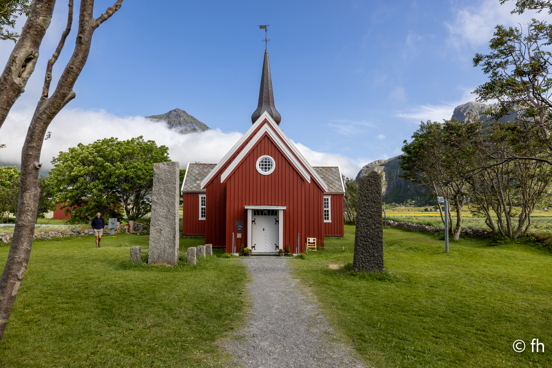 Heute war ein durchwachsener Tag, mehr Regen als Sonne. Die Gärtner freuen sich. Da es die letzten Tage Abends etwas kälter war, haben wir unseren Gasvorrat etwas belastet. So war es nötig einen kleinen Umweg zu machen, was sind schon 100km mehr. Die Möglichkeiten eine deutsche Gasflasche in Norwegen zu füllen, sind begrenzt. Also ab nach Fauske dort gibt es eine Station zum Auffüllen. Da wir den selben Weg nicht zurückfahren wollten, und Zeit ja kein Rolle spielt, haben wir uns eine schmale Straße ausgesucht. Wunderschön und kein Verkehr, aber die Straße voller Schafe. Denen ist egal wo sie sich gerade niederlassen und wenn es mitten auf der Straße ist. Platz machen kommt nicht in frage. Da musst du halt warten. Auf dem Weg zurück zu unserer geplanten Route mussten wir dann nochmal an dem Saltstraumen vorbei. Ein kurzer Stopp und mit der Drohne ein paar Videos aufgenommen. Das Video ist unten zu sehen. Heute mit Musik. Nach der erfolglosen Besichtigung einer im 12. Jahrhundert erbauten Kirche in Inndry. Hier sind die Kirchen immer geschlossen, egal wo du hin kommst. Die kommende Nacht verbringen wir auf dem Campingplatz in Strovik. Der Platzwart ist ein echter Dortmunder. Dortmund-Kurl, Flemerskamp. Er lebt schon seit 20 Jahren hier. Im Winter zieht es ihn 3 Monate lang nach Dortmund, seine Familie lebt dort. Morgen kommt die Sonne wieder, bestimmt.