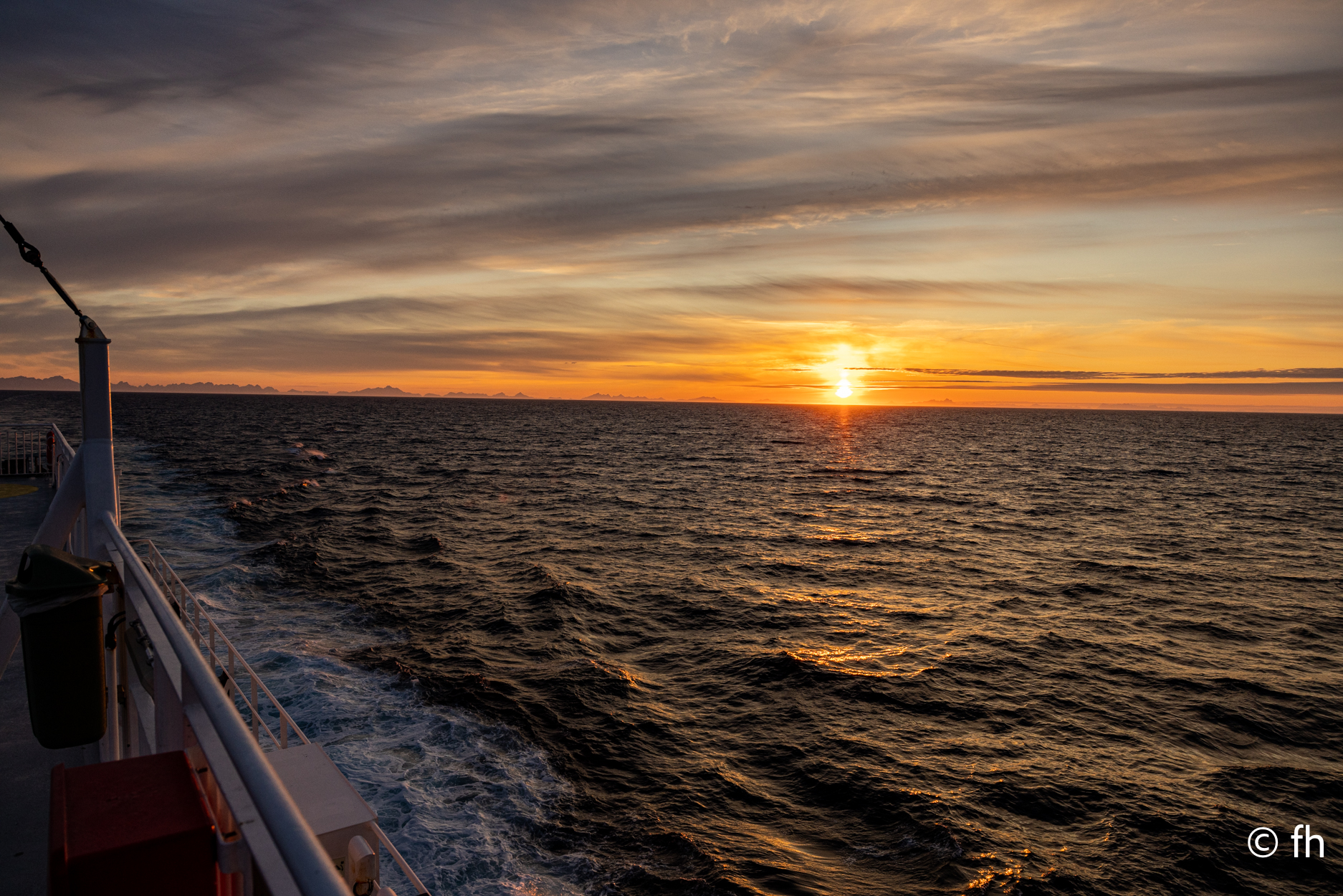 Die Fähre ist pünktlich um 23:45 Uhr gestartet und wird um 03:00 Uhr in Bodo anlegen.