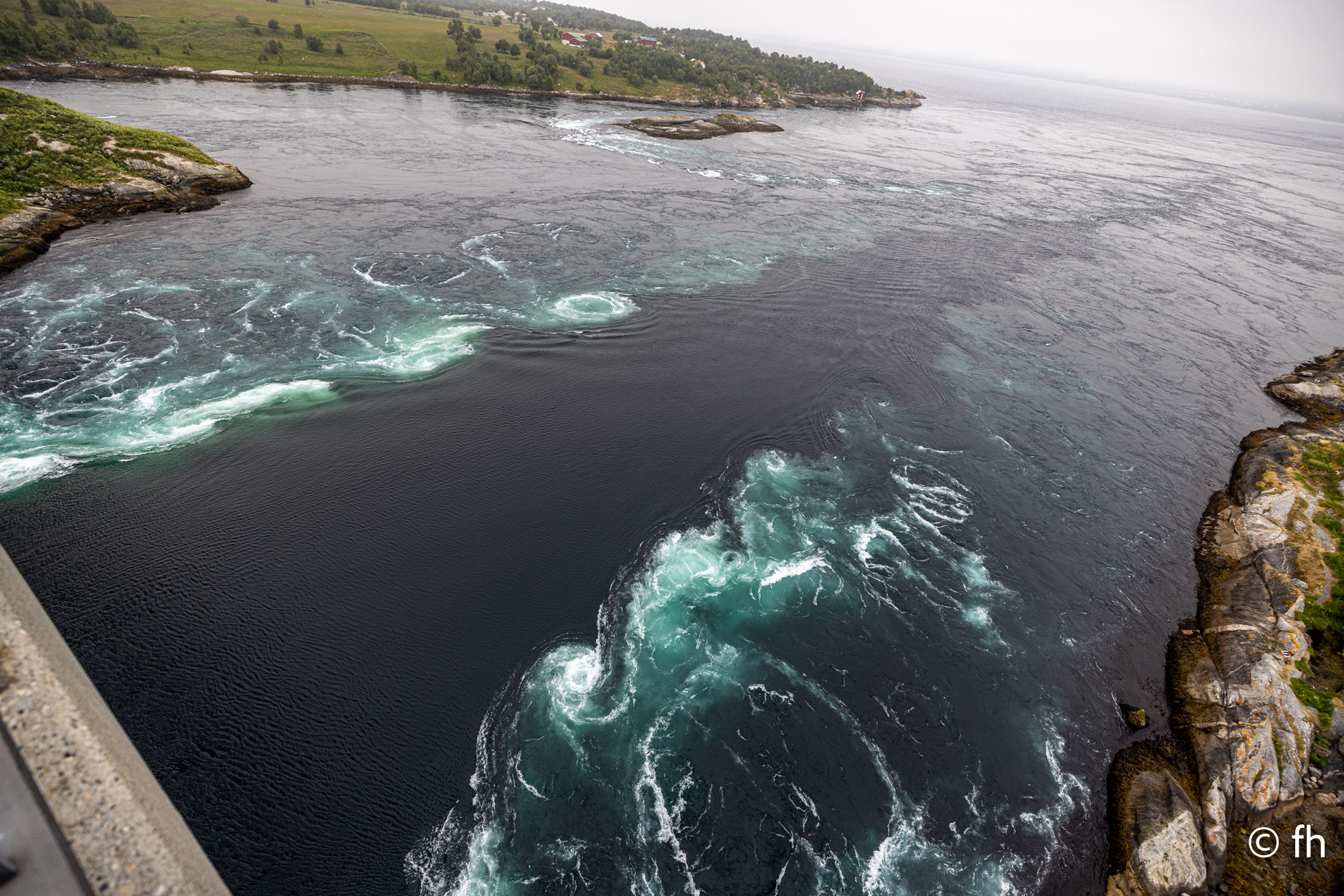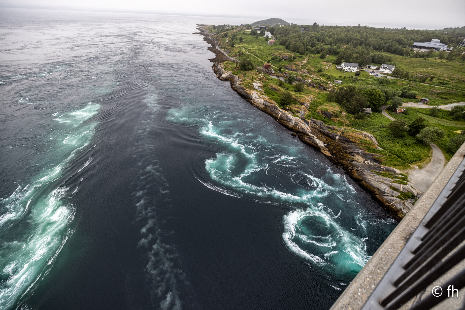 Die Überfahrt von Moskenes nach Bodo haben wir gut überstanden. Von der Fähre bis zu unserem Nachtquartier direkt am Hafen waren es nur ein paar Minuten. Geparkt und ab ins Bett. Auf das Übliche in die Waage stellen des Wohnmobils haben wir verzichtet. Es war schließlich nach 03:00 Uhr. Heute stand dann etwas Kultur auf dem Plan. Das Luftfahrtmuseum in Bodo. Es gab dort auch einen Flugsimulator an dem jeder mal sein Glück zu fliegen, erfahren kann. Aber wir wollten die Welt in echt von oben sehen. Wir haben mit einem Piloten, sein Name ist Espen, einen Termin am Flughafen ausgemacht. Der Plan sich den Saltfjorden von oben anzusehen ist leider geplatzt. Espen hat uns angerufen und uns mitgeteilt, dass die Wolken zu tief hängen. Wir werden es morgen noch einmal versuchen. In Saltstraumen angekommen ging es nach dem Abendessen zur Brücke unter der alle 6 Stunden ein einmaliges Schauspiel stattfindet. Der stärkste Gezeitenstrom der Welt liegt an der Straße 17, 33 km von Bodo. Alle sechs Stunden werden hier fast 400 Millionen Kubikmeter Wasser mit bis zu 37 km/h Geschwindigkeit durch die 3 km lange und 150 Meter breite Meerenge gepresst.