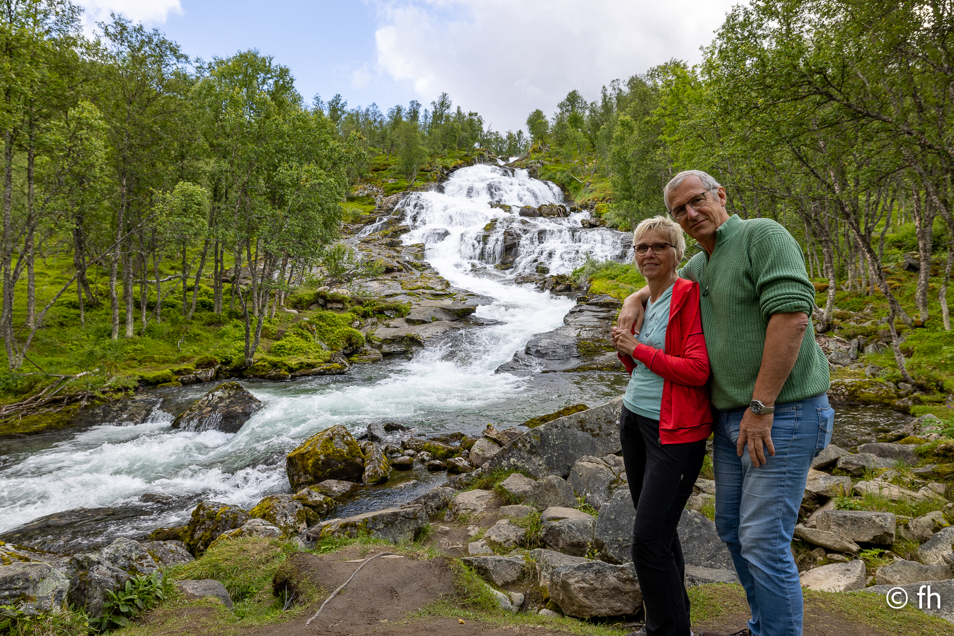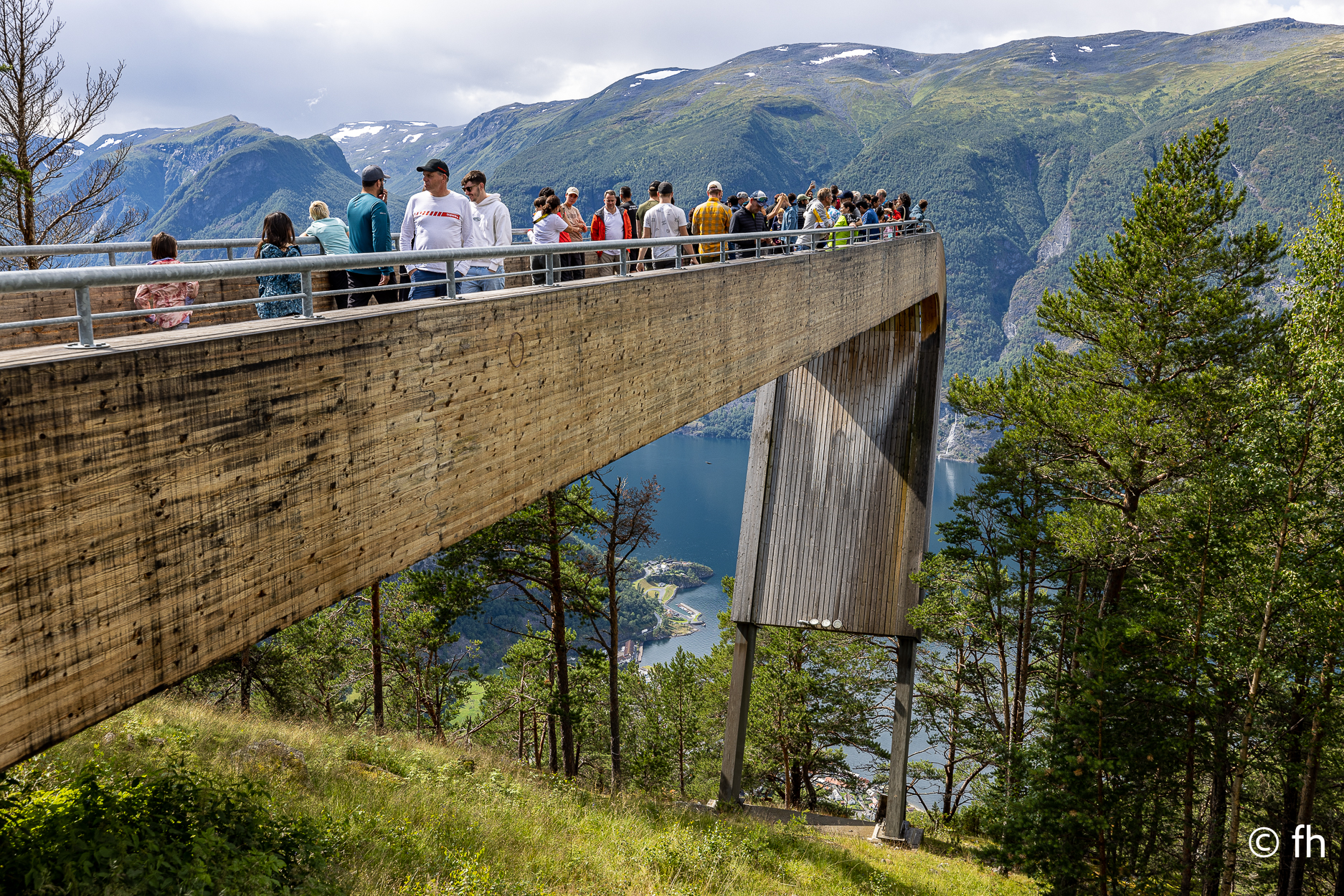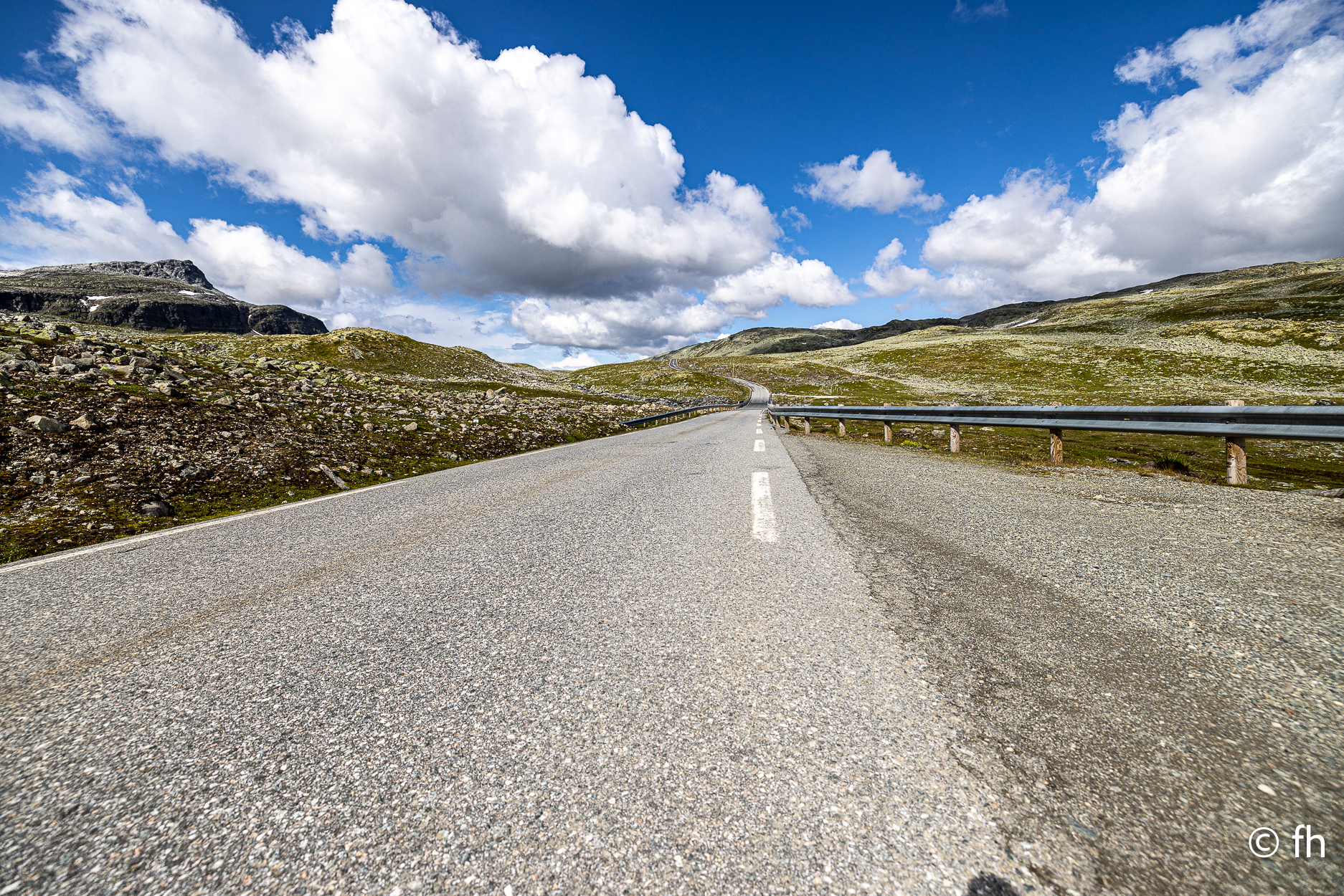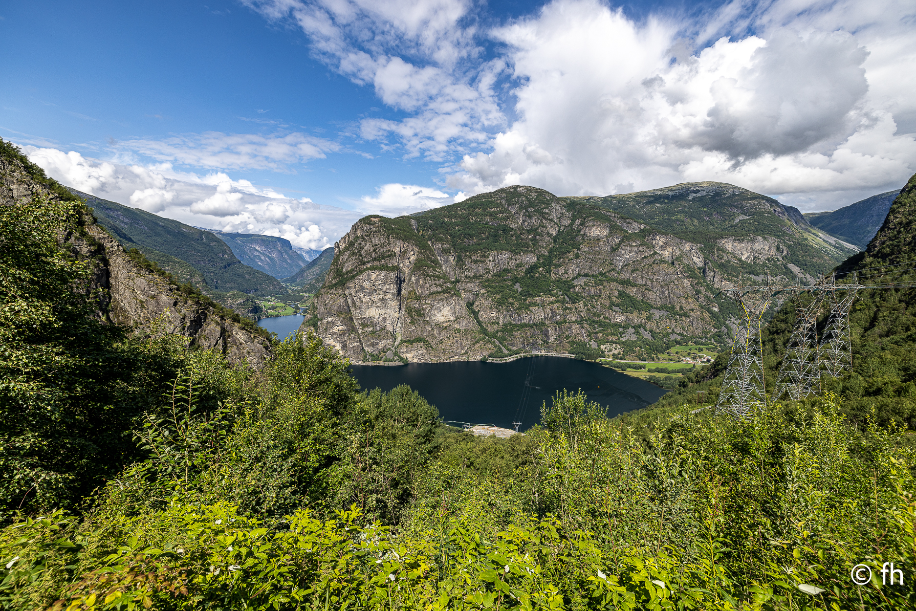 Die Fahrt von Bergen nach Gudvangen war ein nasses Abenteuer, die meiste Zeit nur Regen. Also nichts Besonderes zu berichten. Nach der Ankunft auf dem Campingplatz in Gudvangen haben wir die Wikingerstadt besucht. Ne, nicht wirklich. 500 Meter vom Campingplatz gab es ein Wikingerdorf zu besichtigen. Zum Glück war das Museum schon geschlossen. Auf dem Rückweg ging’s noch kurz zum Fähranleger nur 300 Meter die Straße rein. Ein Riesen-Store mit lauter Nippes und einem Restaurant mit geschätzt 200 Sitzplätzen, nichts für uns. Gleich nebenan ein Bäckerladen, nichts wie hin, vielleicht gibt es hier Zimtschnecken. Es gab noch mehr als Zimtschnecken. Alles sah lecker aus. Die Wahl fiel auf einen mini Berliner und ein Teil mit Schokoladen-Stückchen, habe den Namen vergessen. Als ich noch einen zweiten Cappuccino bestellte, und gleichzeitig das Lokal und die verspeisten Dinge lobte, ging es los. Der Chef erklärte uns, dass er das Geschäft erst seit einem Jahr betreibt und das Gebäude ein altes Postamt war. Der Holzkonstruktion war ihr Alter anzusehen. Nach einem netten Plausch mussten wir dann noch auf Kosten des Hauses ein Croissant gefüllt mit Schokolade probieren. Lecker. Heute Morgen haben wir uns dann für die tägliche Kaffeepause mit frischen Croissants eingedeckt. Wir haben die Croissant dann an einem der unzähligen Bäche die das Land bietet genossen. Nach dem Start heute Morgen ging es nach ca. 1000 Meter in den ersten Tunnel, 12 km lang. Wir hatten gestern Abend den Plan, heute durch den längsten Autotunnel der Welt zu fahren, der ist 24,5 km lang. Der wäre kurz nach dem 12 km langen Gudvangen Tunnel gekommen. Vor dem Tunnel haben wir uns dann entschlossen, den Weg über den Berg zu nehmen. Der Umweg hat uns den ganzen Tag gekostet, aber es war die richtige Entscheidung. Wir wurden mit unbeschreiblichen Eindrücken belohnt. Eine wunderschöne Landschaft. Dort auf der Hochebene sieht es teilweise aus wie auf dem Mond, obwohl wir noch nie da waren, auf dem Mond. Einfach eindrucksvoll, du kannst kilometerweit über die Berge schauen. Für die heutige Nacht haben wir uns am Rande eines Fjords gestellt. Kein Campingplatz, wir sind autark, Gas für die Heizung und heißes Wasser ist ausreichend vorhanden. Wir genießen die Aussicht bis es dunkel wird.